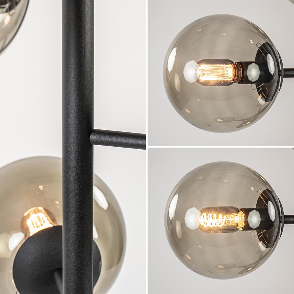 / Lampen / Vloerlampen / Grote vloerlamp 6-lichts zwart met smoke glazen bollen