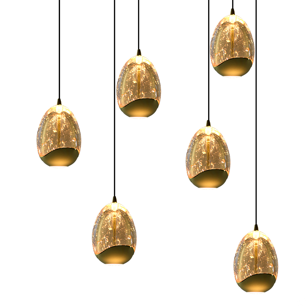Homepagina / Lampen / Eettafellampen / Hanglamp 18L Golgen Egg- Amber/Goud/Zwart