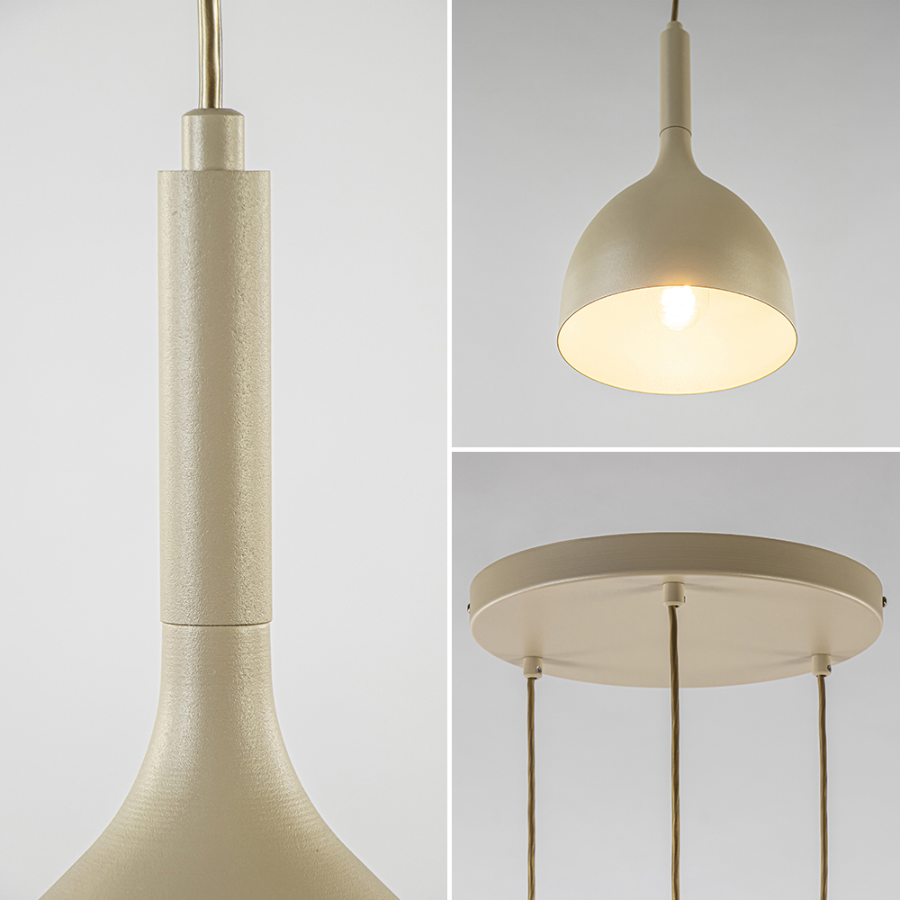 – afm: Ø38×100 cm – kappen: Ø17×30 cm – plafondbevestiging: Ø30×3 cm – metaal – beige – exclusief lichtbronnen (3x E27) – dimbaar (exclusief)