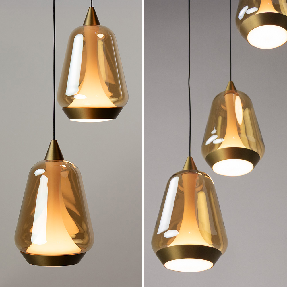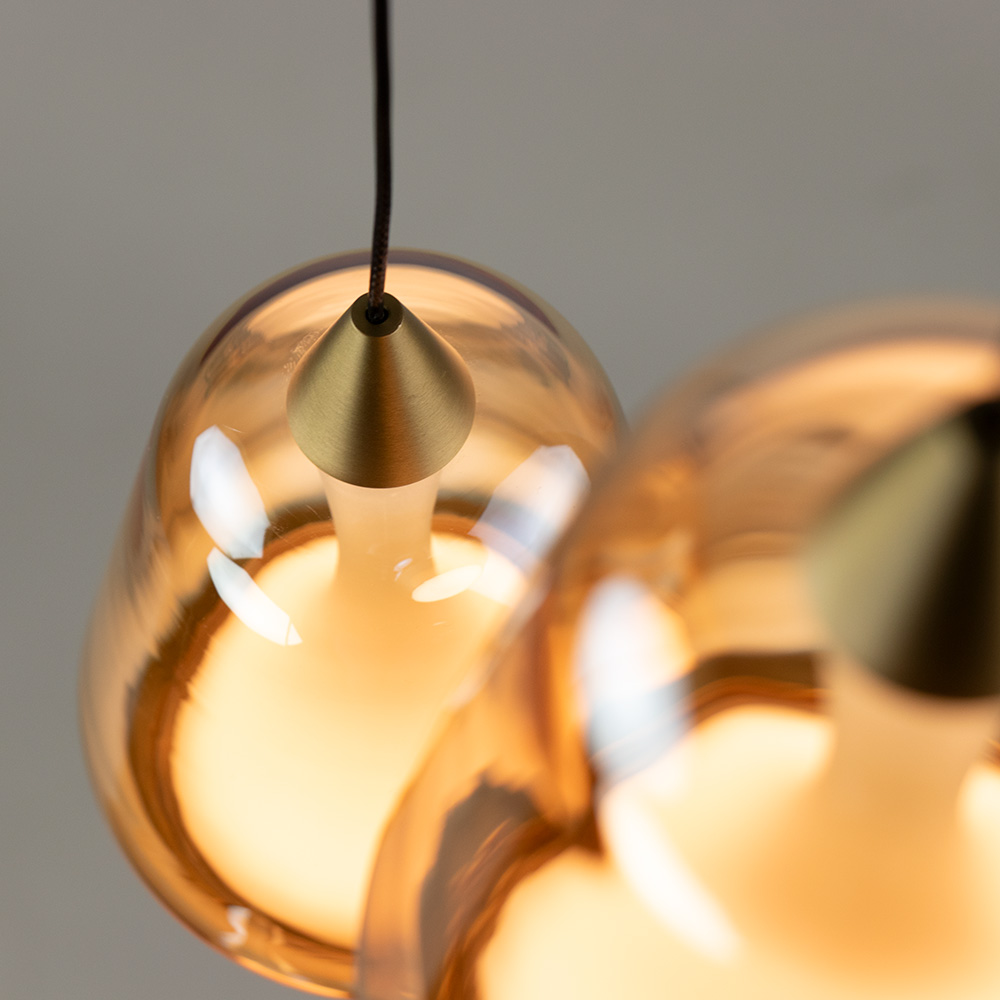Details: – Afmetingen: Ø28×165 cm – Bevestiging: Ø22×4,5 cm – Kappen: Ø11,8×18 cm – Kleur: Amber, zwart & goud – Materiaal: Glas & metaal – Geïntegreerd LED – In hoogte verstelbaar tot max. 165 cm