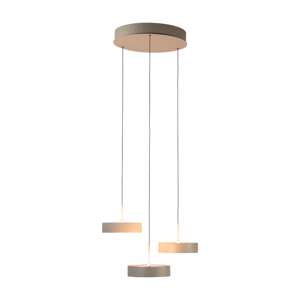 Deze leuke hanglamp is voorzien van drie ronde schijven die zijn uitgerust met LED up & down light. Dit creërt niet alleen functioneel licht, maar ook prachtige sfeerverlichting. Uitgevoerd in een crème kleur en voorzien van een handig systeem om de hoogte van de lamp gemakkelijk te kunnen verstellen.