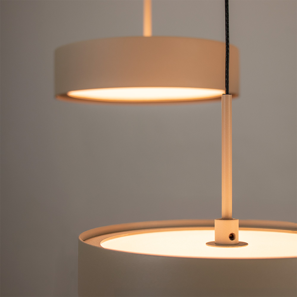 Details: – Afmeting: Ø43x190cm – Kappen: Ø17,5×4,5cm – Bevestiging: Ø33×5,5cm – Kleur: Crème – Materiaal: Metaal – Geïntergreerd LED – Gewicht: 5kg – Up & down verlichting – Dimbaar: Externe dimmer (excl.)
