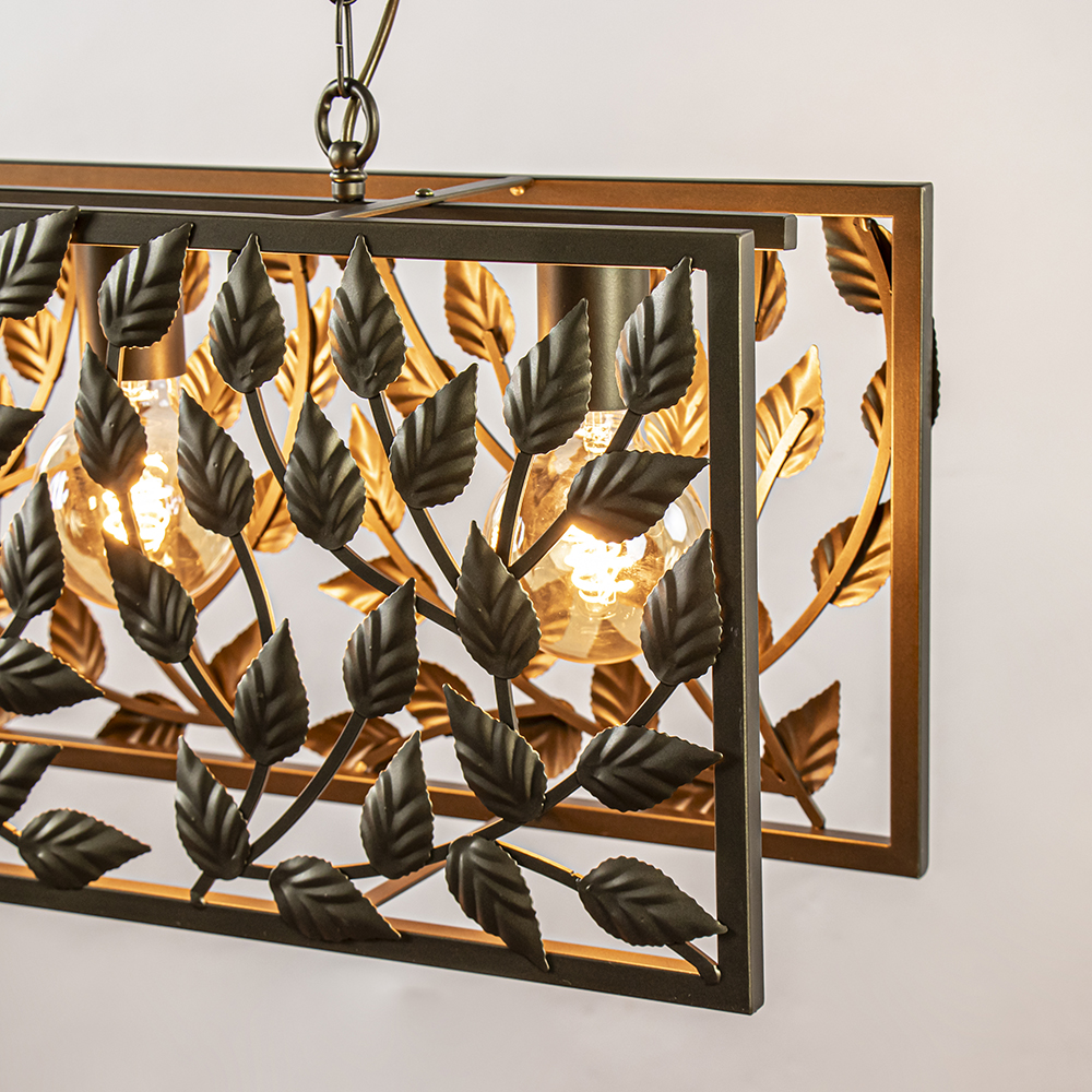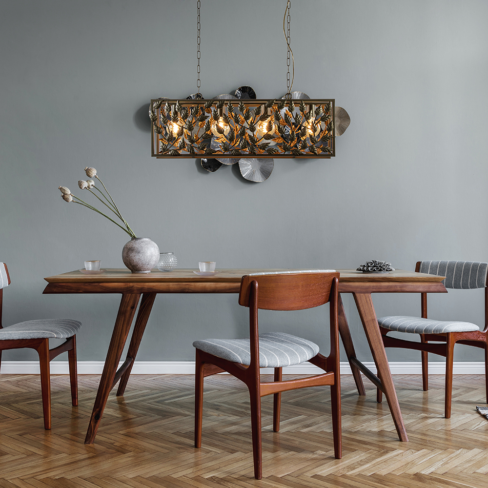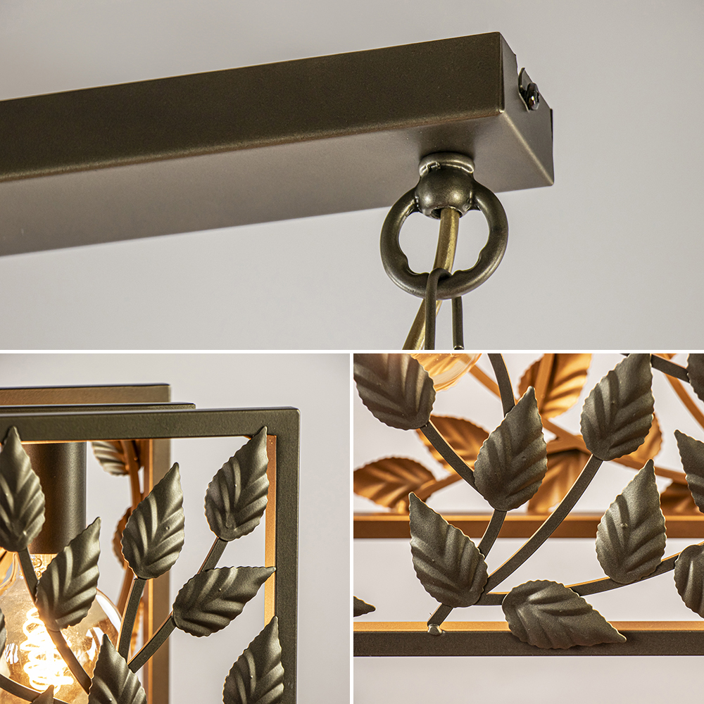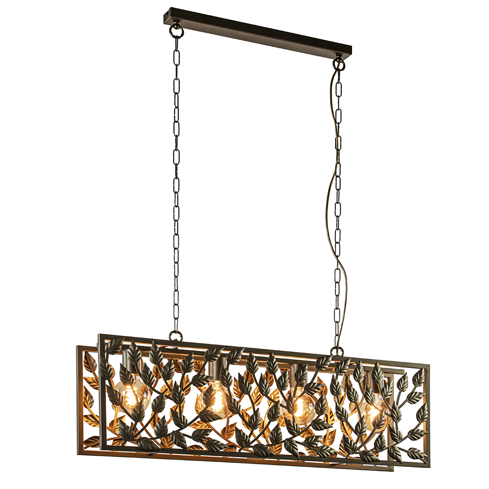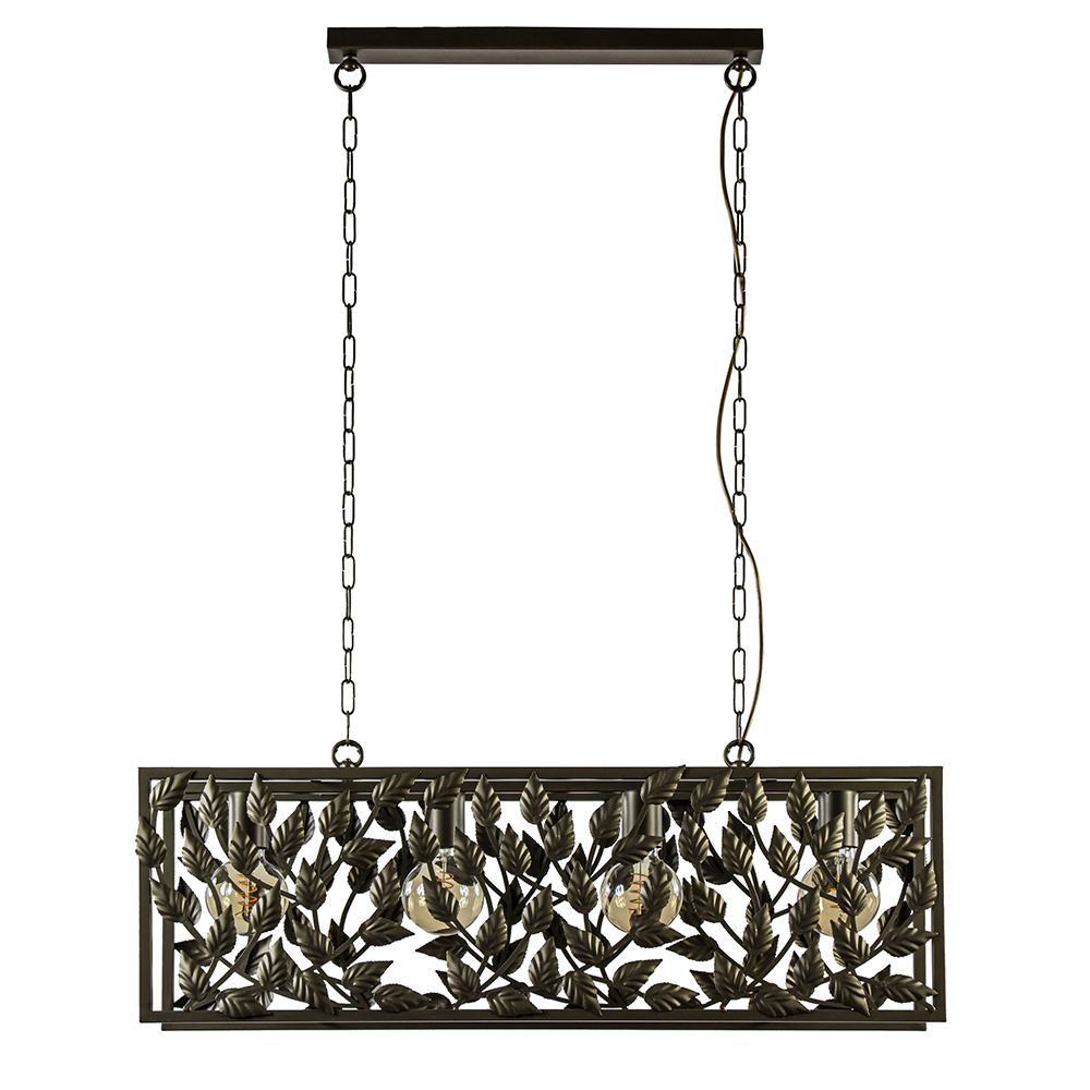 Breng de schoonheid van de natuur naar uw eettafel met deze eettafellamp met een blaadjes-patroon. De lichtbronnen in deze hanglamp zijn omringd door metalen bladeren wat zorgt voor een rustige en gezellige sfeer. Naast het feit dat deze hanglamp robuust is behoudt de lamp zijn elegantie.