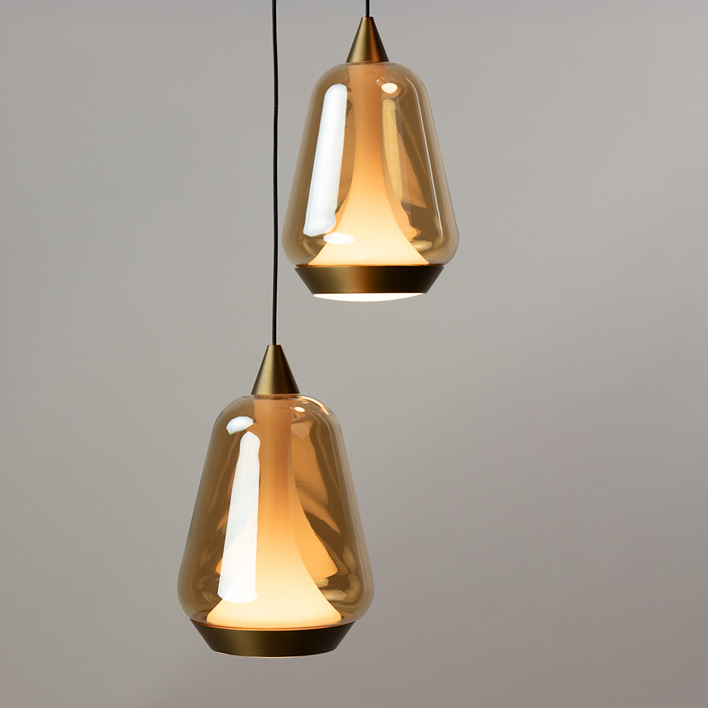 Details: – Afmetingen: Ø36×165 cm – Bevestiging: Ø30×4,5 cm – Kappen: Ø11,8×18 cm – Kleur: Amber, zwart & goud – Materiaal: Glas & metaal – Geïntegreerd LED – In hoogte verstelbaar tot max. 165 cm