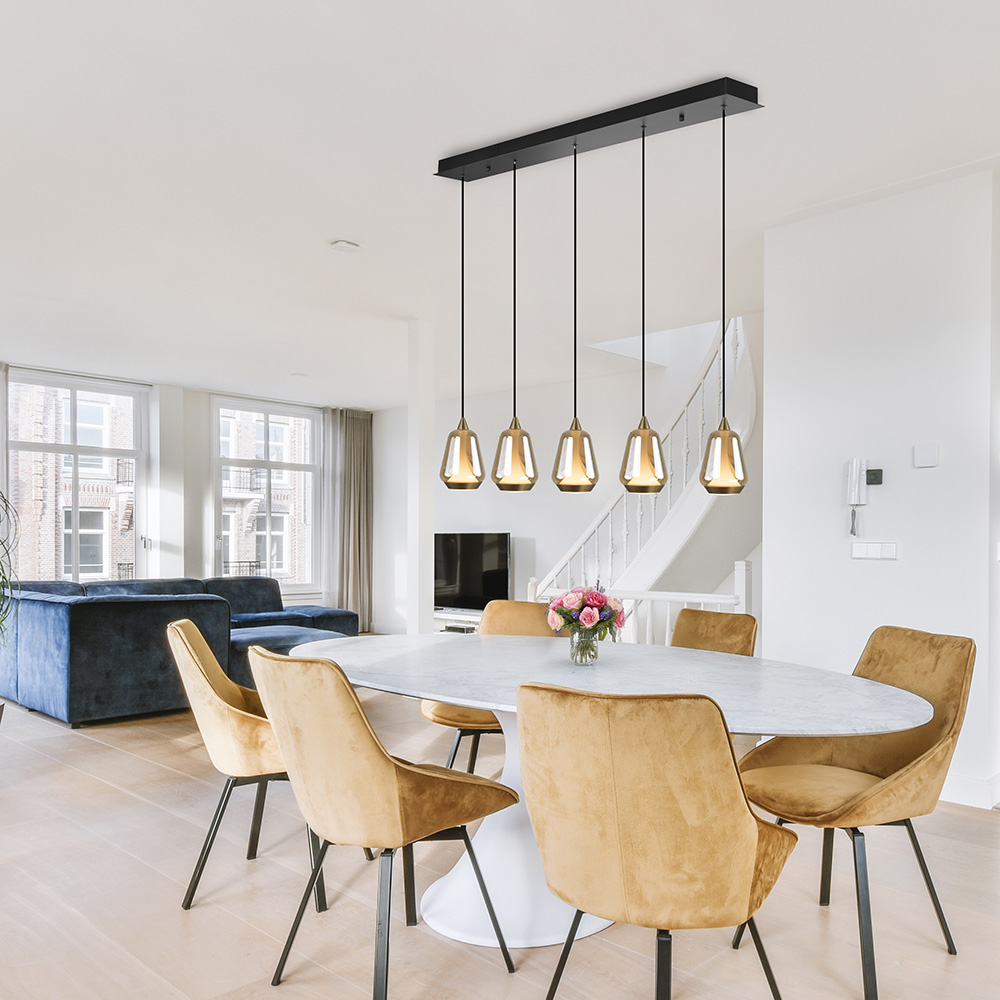 Hanglamp 5L LED Balk – Amber glas & zwart