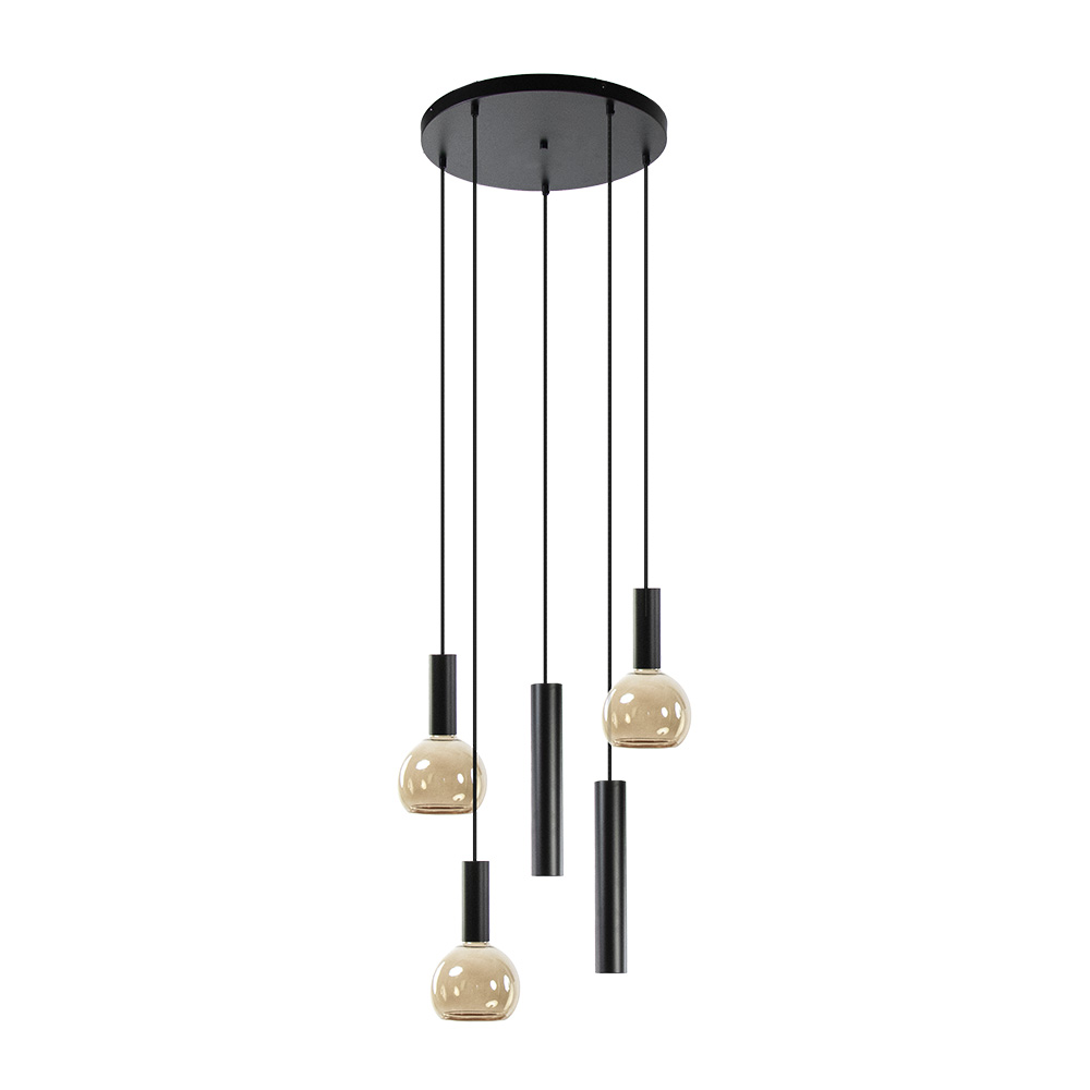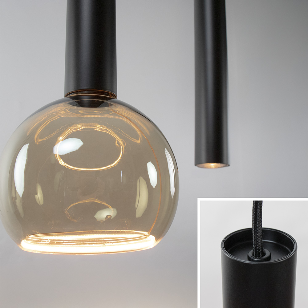 Ontdek deze innovatieve lamp die een modern tintje zal geven aan de eettafel. De afwisseling tussen pendels en cilinders rond de lichtbronnen zorgt voor een moderne uitstraling. Daarnaast draagt deze combinatie bij aan de stijlvolheid van de eetruimte. Uitgevoerd in een zwarte kleur is de lamp ideaal voor bij maaltijden, gezellige diners, en elke gelegenheid waarbij een sfeervolle verlichting gewenst is.