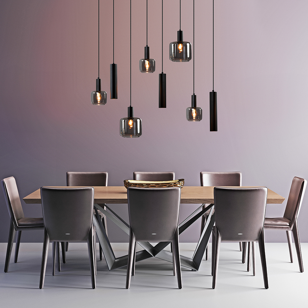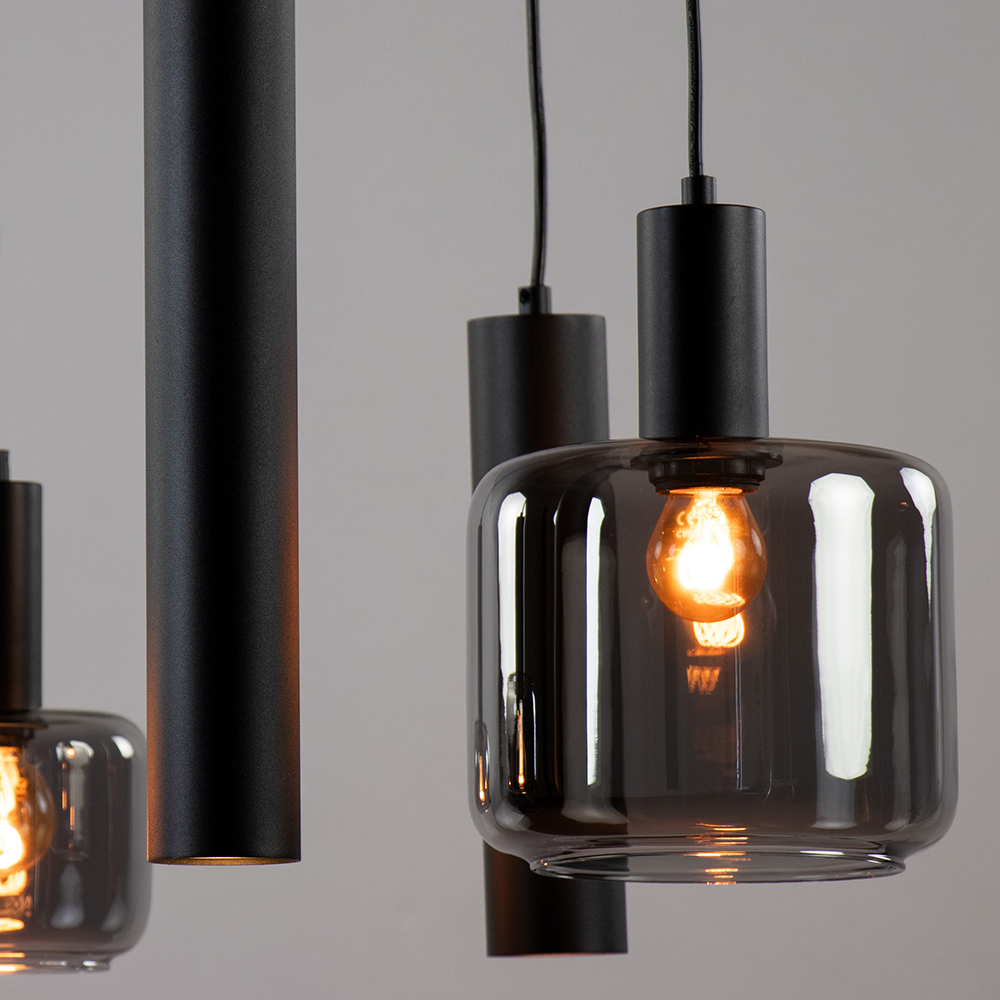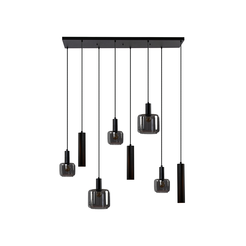 Homepagina / Lampen / Eettafellampen / Hanglamp 8-L rechthoek – zwart + smoke glas