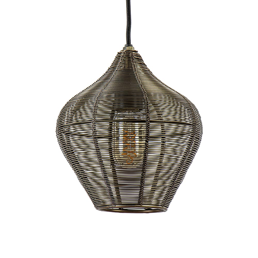 Deze draad hanglamp heeft een warme en gezellige uitstraling. Dit komt door zowel de tulp-vorm als door de antiek afgewerkte brons-kleur van het metaal. Mooi boven een niet te grote ronde eettafel, de salontafel of met meerdere exemplaren boven een langwerpige eettafel. In deze lamp is de lichtbron zichtbaar, dus kunt u het beste kiezen voor een decoratieve lichtbron. Mooi in een oosters, klassiek of landelijk interieur. Mocht de hanglamp te lang zijn is deze gemakkelijk in te korten.