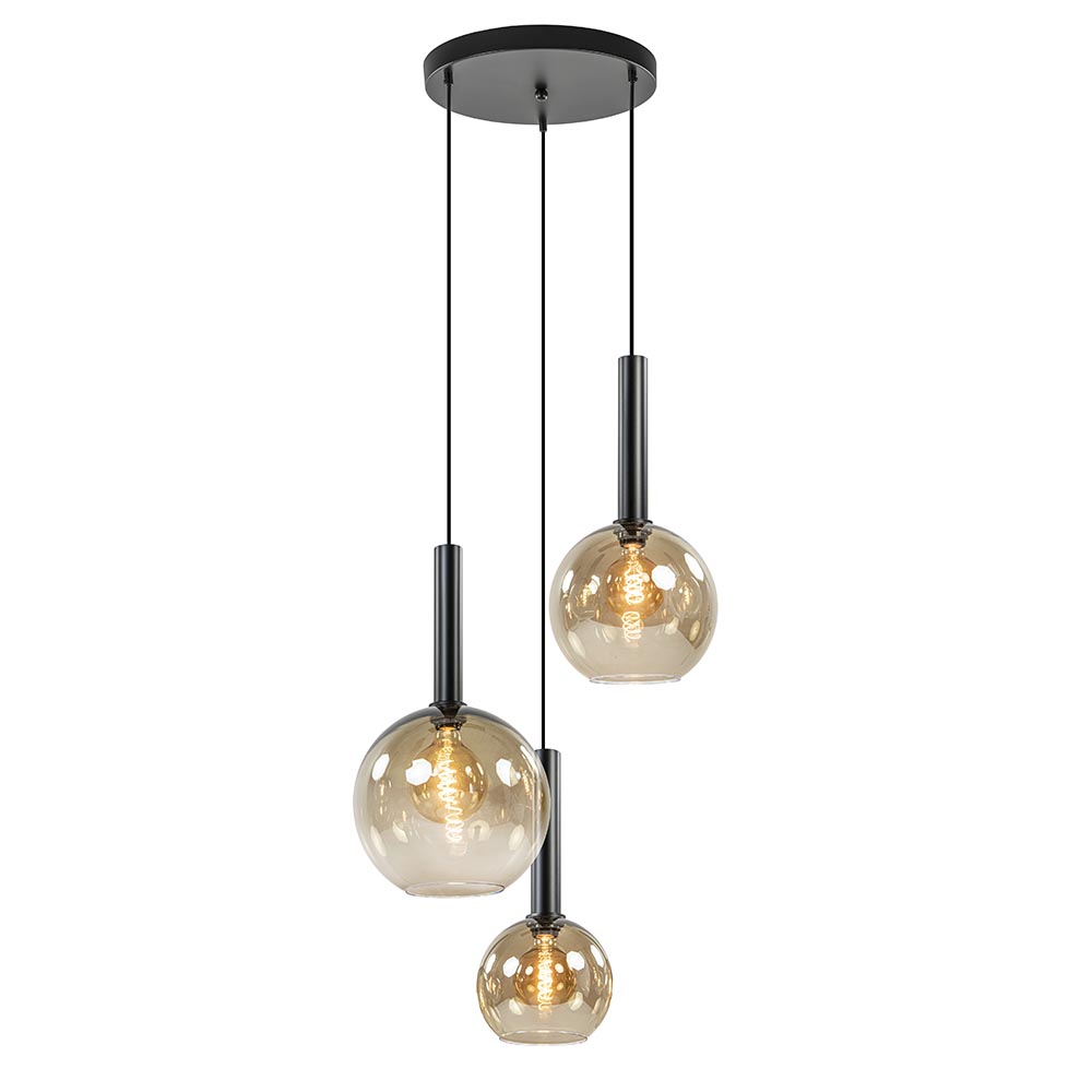 / Lampen / Hanglampen / Hanglamp Bella 3L rond zwart+smoke glas
