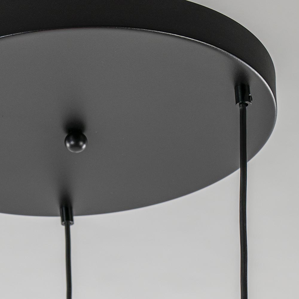 – hoogte: 230 cm – smoke glas 1: Ø30 cm – smoke glas 2: Ø25 cm – smoke glas 3: Ø20 cm – bevestiging: Ø305×3,5 cm – cilinders: Ø4,5×25 cm – metaal, mat zwart – in hoogte verstelbaar – exclusief lichtbron (3x E27) – dimbaar (exclusief)