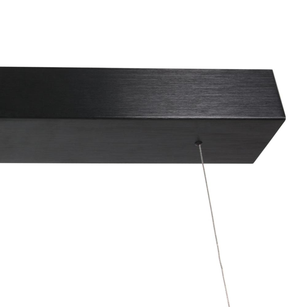 Een strak design die perfect matcht in de huidige interieurstijlen. De hanglamp heeft een langwerpige kap met een lengte van maar liefst 171 cm. Over de metalen balk zijn in totaal 11 lichtpunten verdeeld, 7 aan de onderzijde en 4 aan de bovenzijde. Deze zijn voorzien van LED verlichting wat de lamp energiezuinig maakt. De verlichting geeft in totaal met 6600 lumen voldoende warm wit licht bij 2700 Kelvin. Middels een externe dimmer (exclusief ) is de lamp te dimmen. De langwerpige kap hangt aan 2 staaldraden die gemakkelijk naar wens zijn in te korten of juist zijn te verlengen. Dit werkt gemakkelijk met behulp van cable-lifts die in de plafondbalk zijn verwerkt. De langwerpige hanglamp is een prachtige toevoeging aan een lange eettafel of vergadertafel in een kantoor.