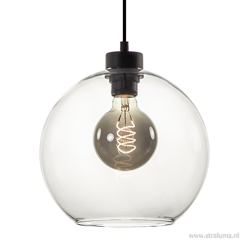 Glazen lampen zijn helemaal trendy, en in vele soorten en maten verkrijgbaar. Deze helder glazen bol is een ideale hanglamp omdat deze in vrijwel alle soorten woonstijlen en ruimtes past. De lamp kan worden opgehangen boven een ronde eettafel, een salon- of bijzettafel, als bedlampje of als sfeerverlichting in de hal. De glazen kap hangt aan zwart stof omwonden snoer die in hoogte is te verstellen zodat u zelf kunt kiezen hoe hoog de kap komt te hangen, ideaal! Door het heldere glas bepaald de lichtbron wel de sfeer, kies dan ook de juiste voor de gewenste sfeer.