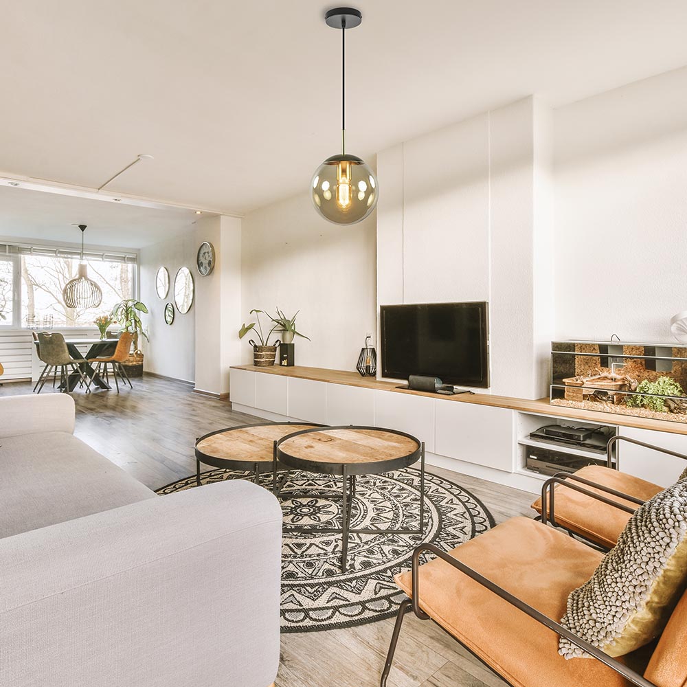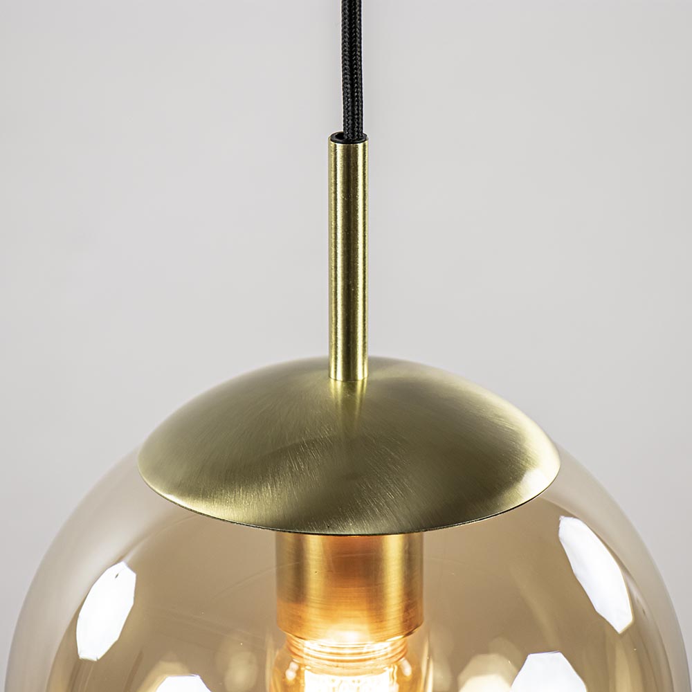 Een prachtige toevoeging voor een hal, woonkamer of slaapkamer. Deze hanglamp bol zorgt in ieder geval voor sfeer, waar deze ook hangt. De hanglamp bestaat uit een amber glazen bol die is afgewerkt met een messing kap en fitting. Het ronde glas hangt aan een zwart stof omwonden snoer die naar wens is in te korten. De maximale hoogte van de lamp is 160 cm. De hanglamp met amber glazen bol wordt geleverd zonder lichtbron (E27).