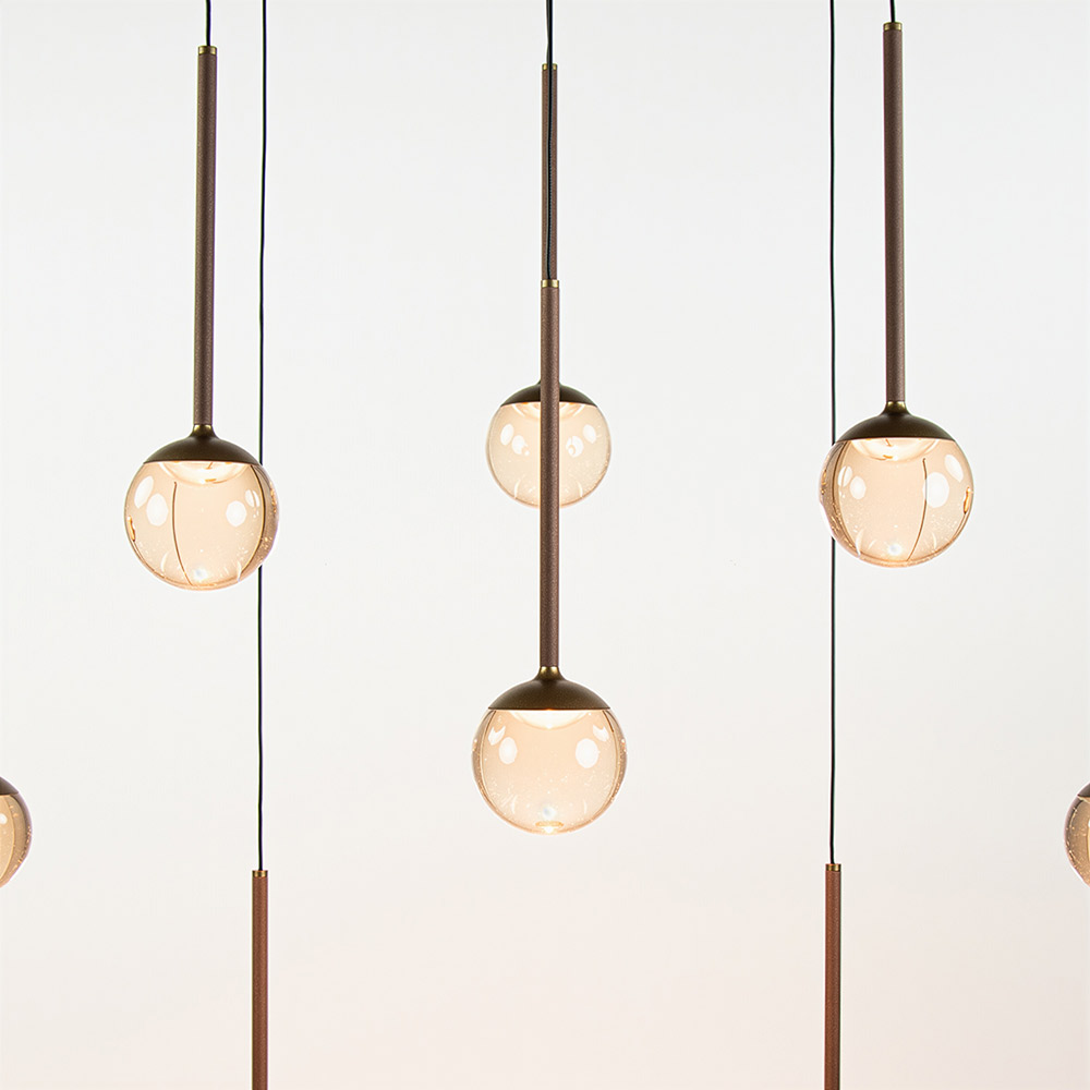 De geïntegreerde LED-verlichting verspreidt een warm en sfeervol licht — perfect voor zowel gezelligheid als functionele verlichting. Iedere pendel is afzonderlijk in hoogte verstelbaar tot een maximale totale hoogte van 209 cm. Zo creëer je altijd de perfecte compositie boven jouw tafel. Combineer de lamp met een externe LED-dimmer voor optimale controle over de lichtintensiteit.