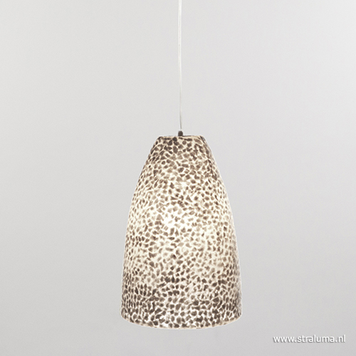 Deze sfeervolle hanglamp zorgt dat je je waant in een strandhuis. De lamp is gemaakt van gebroken stukjes capiz schelpen en geeft direct het strand gevoel in huis. Dit wordt extra versterkt wanneer de schelpenlamp wordt aangezet en de schelpen oplichten en een warme en gezellige sfeer geven. De schelpen kap hangt aan een transparant snoer met stalen plafondvebestiging en is gemakkelijk in hoogte te verstellen.