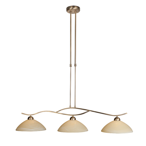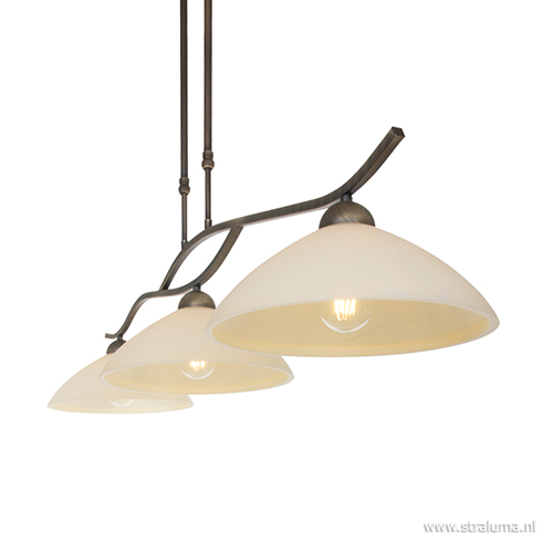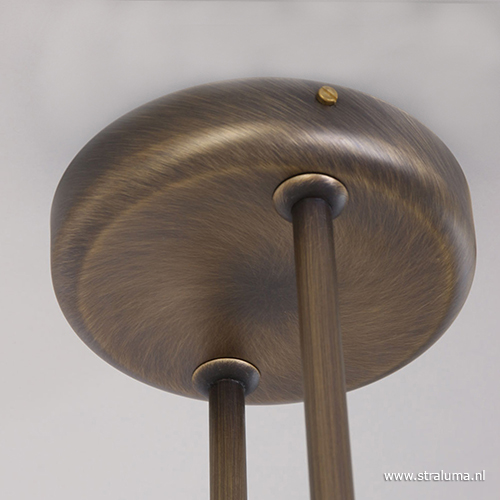 Deze functionele 3-lichts hanglamp Capri heeft tevens een decoratieve uitstraling. Het armatuur is in hoogte verstelbaar (80-125 cm). De glazen zijn vanille albast gevlamd en de vierkante stangen zijn geborsteld brons. De lamp is te dimmen met een normale gloeilamp dimmer, deze is exclusief. Deze lamp is ook leverbaar in nikkel (19771169).