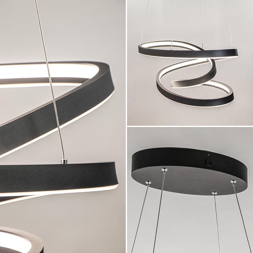 – Afmetingen: Ø115 x 150 cm – Kap: Ø115 x 28 cm – Plafondplaat: 33 x 21 x 5 cm – Inclusief LED (geïntegreerd) – Warm wit – 2000-4000 Kelvin – 11900 Lumen – 100 Watt – 25000 branduren – 15000 aan/uit – Verstelbaar – Mat zwart