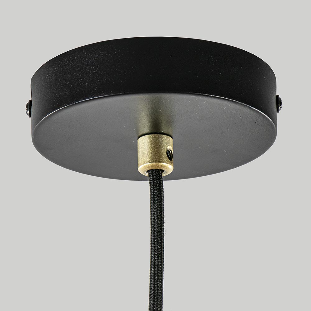 – Afmetingen: Ø15 x 200 cm – Plafond bevestiging: Ø11 x 2.5 cm – Kap: Ø15 x 15 cm – Metaal, mat zwart en goud – Exclusief lichtbron (E27) – Dimbaar (exclusief)