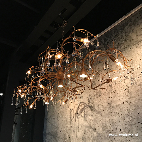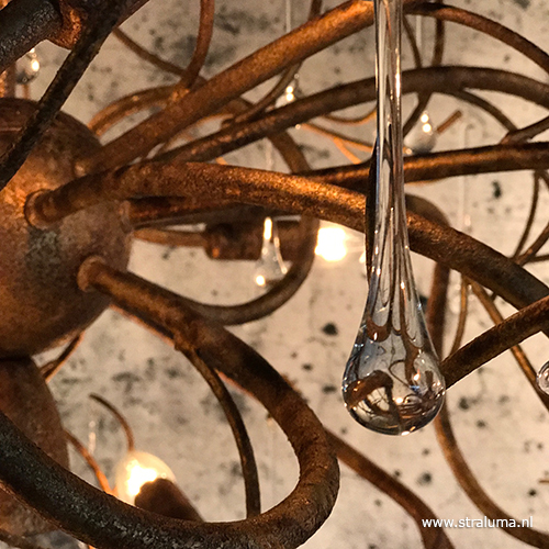 Deze klassiek hanglamp heeft door zijn unieke design een moderne look. De metalen lamp is uitgevoerd in de kleur brons en heeft een speels ontwerp. De armen van de lamp krullen alle kanten op en zijn voorzien van glazen hangers. Wat de hanglamp ideaal maakt voor boven de eetkamertafel is dat, naast de E14 lampen die erin verwerkt zitten, de lamp ook 3 GU10 spotjes heeft die naar onder schijnen en zo de tafel goed verlichten. Deze mooie hanglamp is dus niet alleen mooi om te zien maar ook nog eens functioneel en sfeervol.