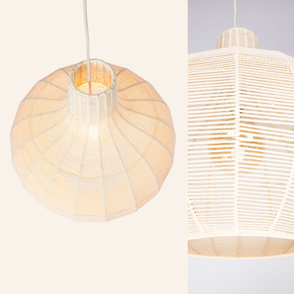 De combinatie van touw en metaal geeft de lamp een lichte, natuurlijke uitstraling die perfect past binnen een Japandi, Scandinavisch of modern organisch interieur. Door de royale afmetingen vormt deze lamp een echte blikvanger zonder zwaar aan te voelen.