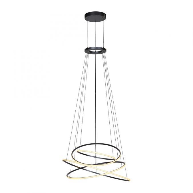 Maak een statement in je interieur met deze indrukwekkende, moderne LED-hanglamp. Deze lamp combineert futuristisch design met ultieme functionaliteit, ideaal voor hoge plafonds en grote ruimtes. De vier ringen, elegant gepositioneerd, creëren een dynamisch en speels effect terwijl het licht zich gelijkmatig verspreidt. Volledig zelf in te stellen in licht- sterkte en temperatuur. De lichtringen van de lamp kunnen ook handmatig in hellingshoek worden versteld. Hierdoor kunt u het licht gericht richten en uw ruimtes optimaal verlichten. In hoogte verstelbaar tussen de 150-600cm.