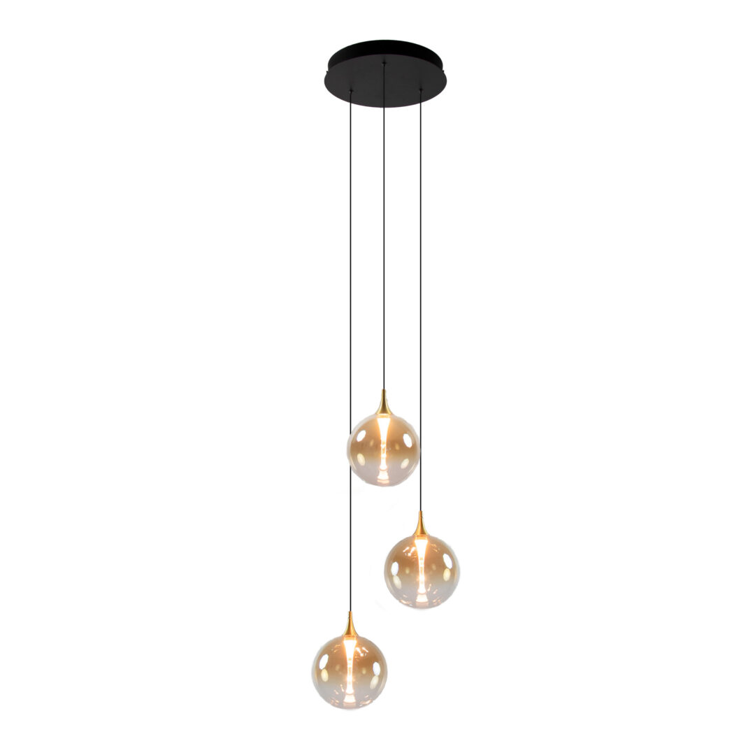 Homepagina / Lampen / Hanglampen / Hanglamp Gisela 3L rond zwart/amber