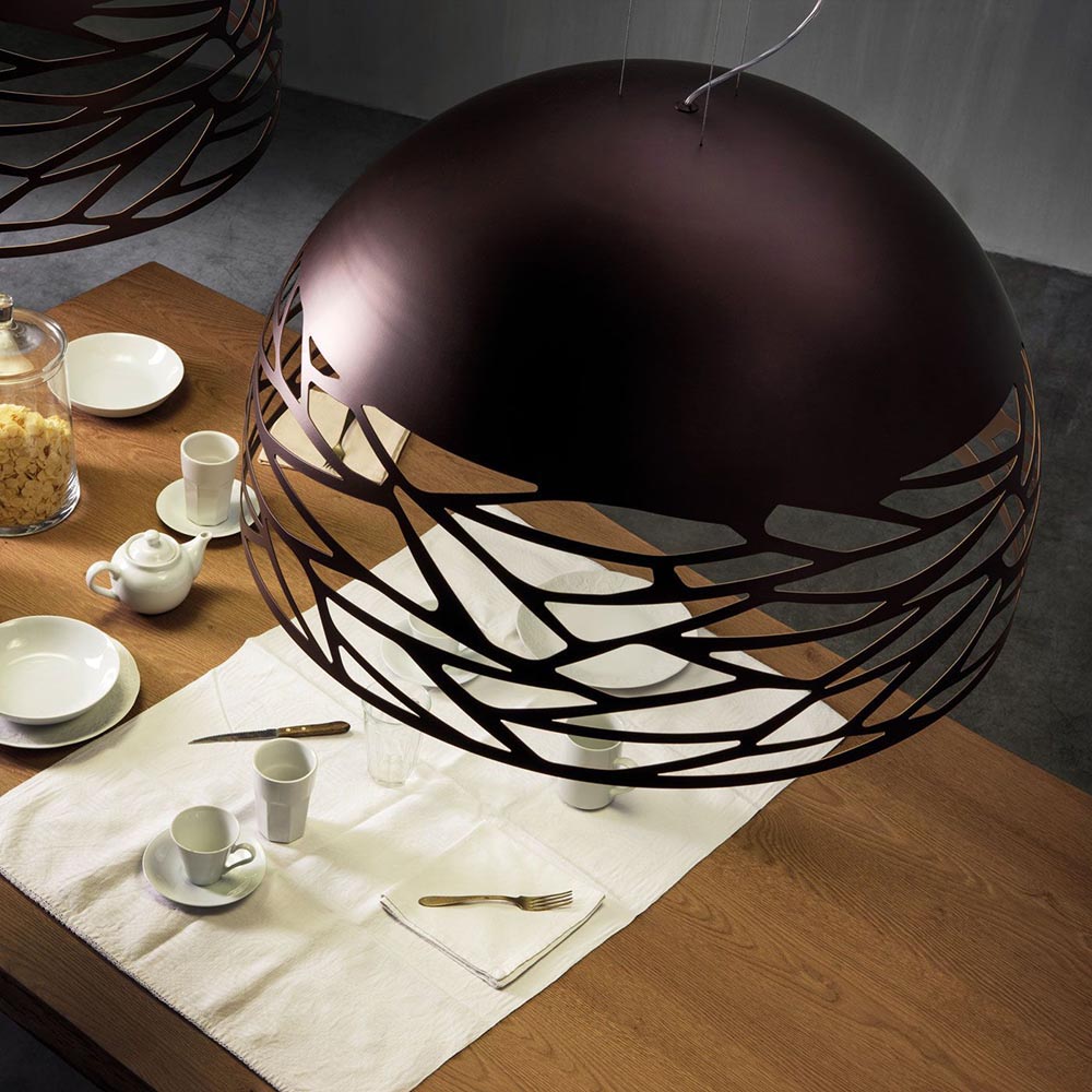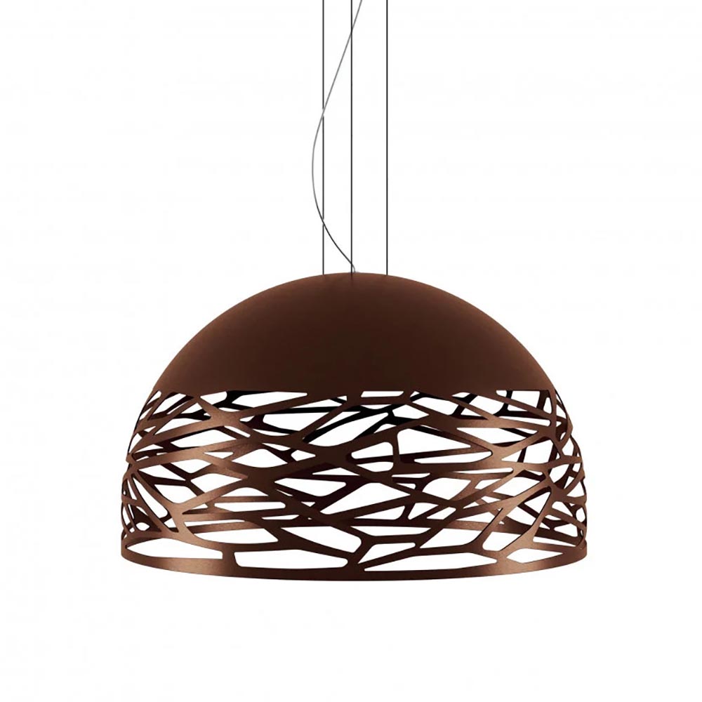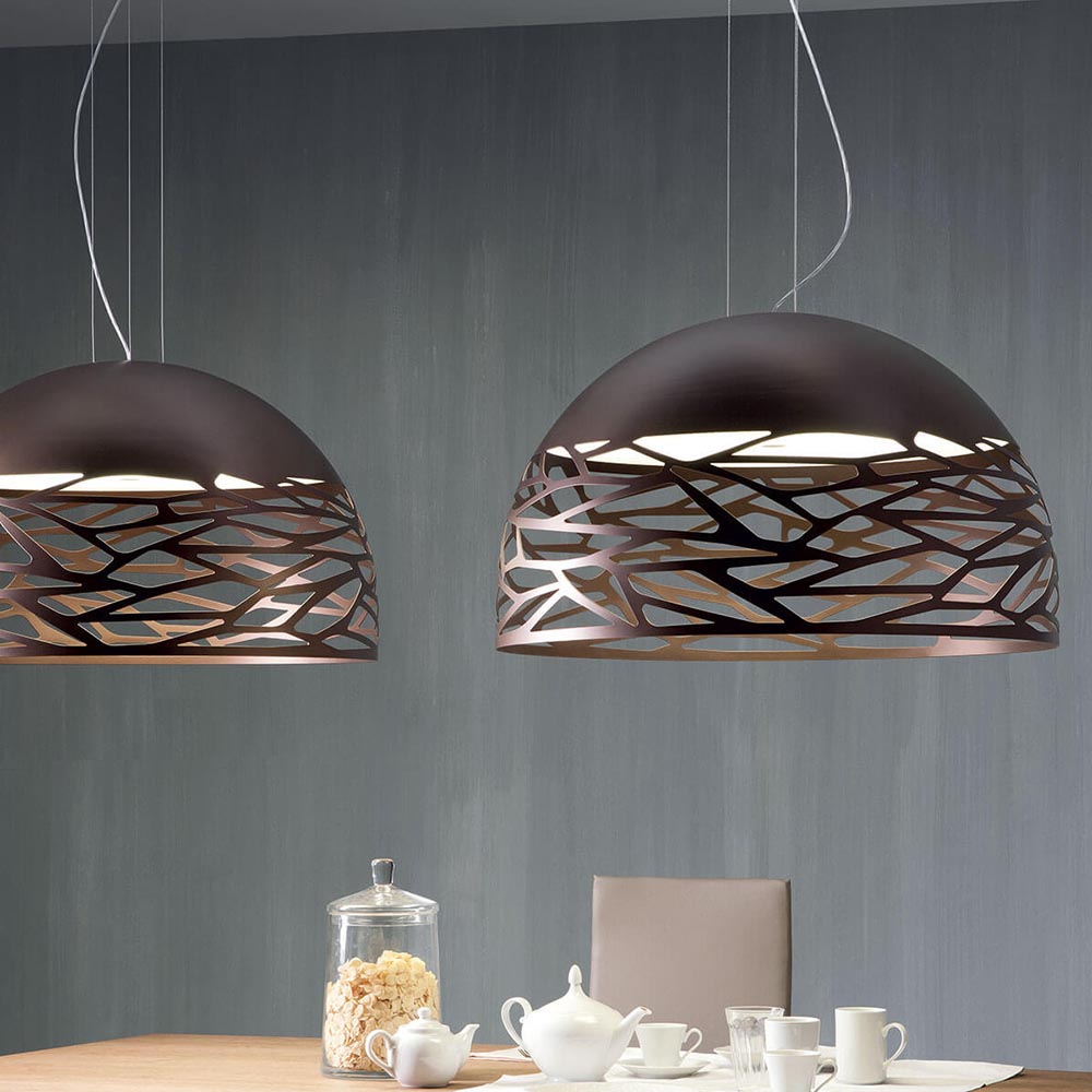 Deze prachtige koepel vormige hanglamp is een sterk staaltje Italiaans design. De warme kleur maakt deze lamp een aanwinst in een landelijk, romantisch of strak klassiek interieur. Uitgevoerd in brons metaal met een mat glazen diffuser, zo kijkt u niet direct in de lichtbron. De mooie opengewerkte rand geeft een prachtig licht/schaduw spel zowel als de lamp brand als wanneer deze uit is. Met dit grote model maakt u direct een statement.