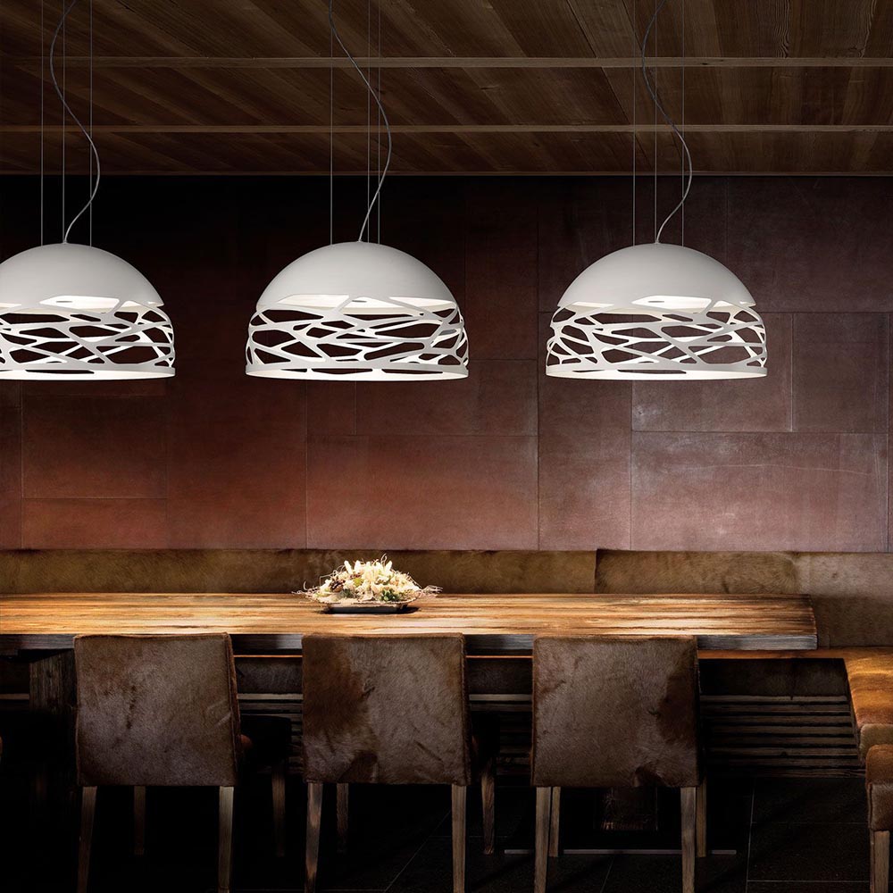 Deze prachtige koepel vormige hanglamp is een sterk staaltje Italiaans design. Staat super in een design of modern interieur. Uitgevoerd in wit metaal met een mat glazen diffuser, zo kijkt u niet direct in de lichtbronnen. De mooie opengewerkte rand geeft een prachtig licht/schaduw spel zowel wanneer de lamp brand als wanneer deze uit is. Met deze design hanglamp maakt u direct een statement.