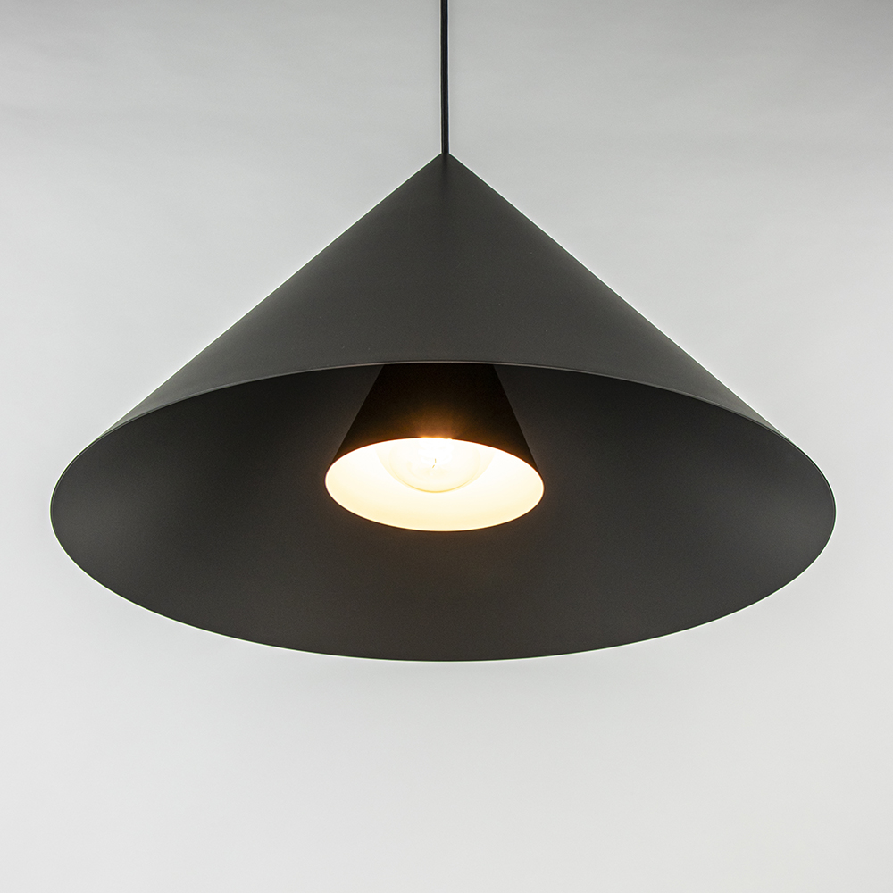 Retro met een vintage look. Deze koepel hanglamp is een leuke toevoeging aan de eetkamer. De koepel is gemaakt van metaal en heeft een doorsnede van 55 cm. De ronde hanglamp is uitgevoerd in het zwart en ook de binnenzijde is donker grijs. In het midden is een kleinere kap te vinden waarin de E27 fitting zich bevindt. Door de kleinere binnenkap wordt het licht wat meer gebundeld naar beneden verspreid. Ideaal voor boven de eettafel. De retro lamp heeft een hoogte van max 250 cm en is naar wens in te korten. U kunt de hanglamp dimmen middels een externe dimmer (exclusief).