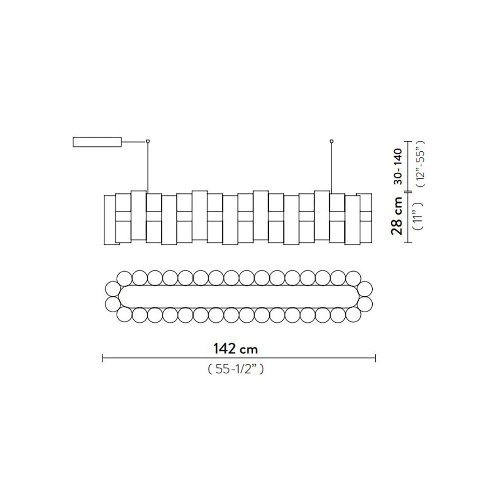 Deze prachtige design hanglamp is een verrijking voor het interieur. Combineer de lamp met een lange eettafel of boven een kookeiland. De lamp zorgt voor een waar spektakel aan licht. De langwerpige hanglamp is samengesteld uit cilinders in diverse kleuren die met de hand zijn gemaakt. Aan de binnenzijde van de cilinders is de kap voorzien van een LED strip die zorgt voor een prachtig schouwspel. De grote kap heeft een lengte van 142 cm en hangt aan 2 snoeren. Deze worden met een begeleider aan het plafond bevestigd. De grote design lamp heeft een maximale hoogte van 140 cm en is naar wens op hoogte te hangen.