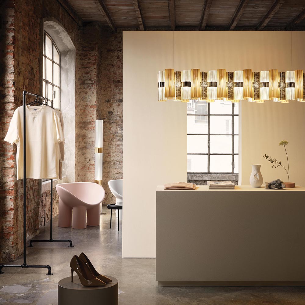 / Lampen / Eettafellampen / Hanglamp La Lollo linear 140 goud