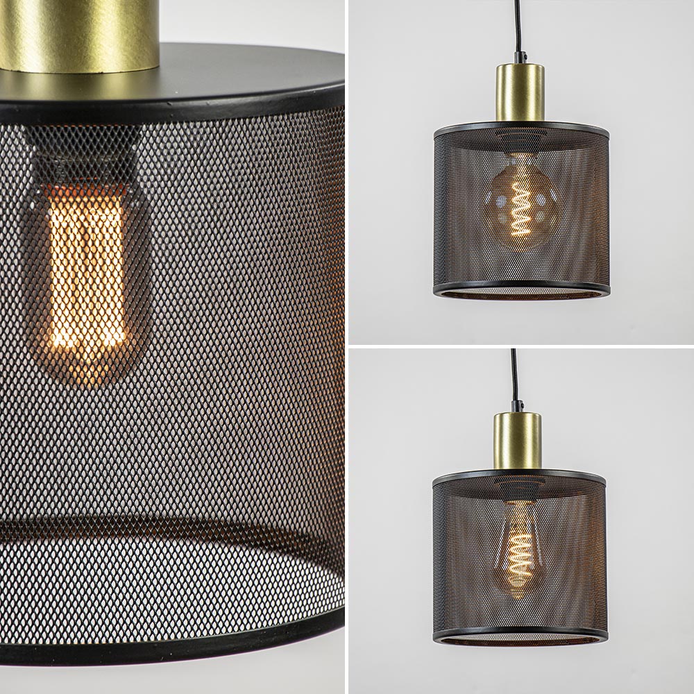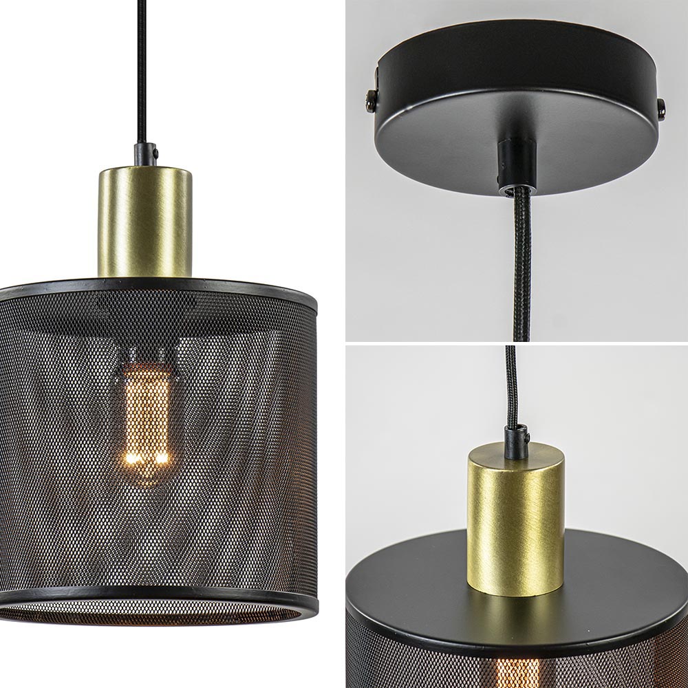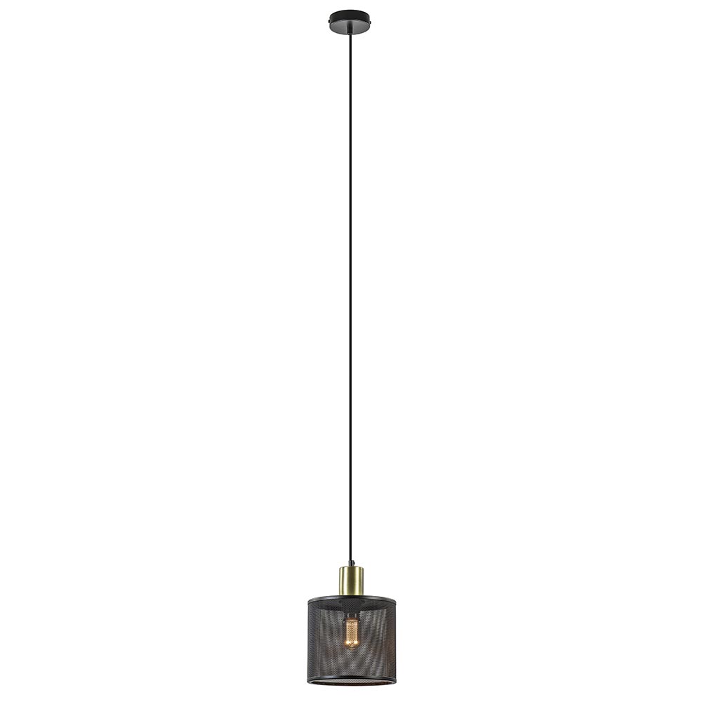 Gemakkelijk toe te passen in diverse ruimtes, deze 1-lichts hanglamp. Leuk voor in de hal, het toilet, slaapkamer of boven een ronde eettafel. De hanglamp heeft een cilindervormige kap die is gemaakt van metaalgaas. Dit geeft de lamp een stoere industriële look en zorgt dat er veel licht kan verspreiden. Leuk detail aan de kap is de gouden fitting die de lamp net even wat chiquer maakt. De hanglamp heeft een hoogte van max 155 cm en is gemakkelijk naar wens in te korten. De mat zwarte hanglamp wordt met een ronde bevestiging opgehangen aan het plafond.