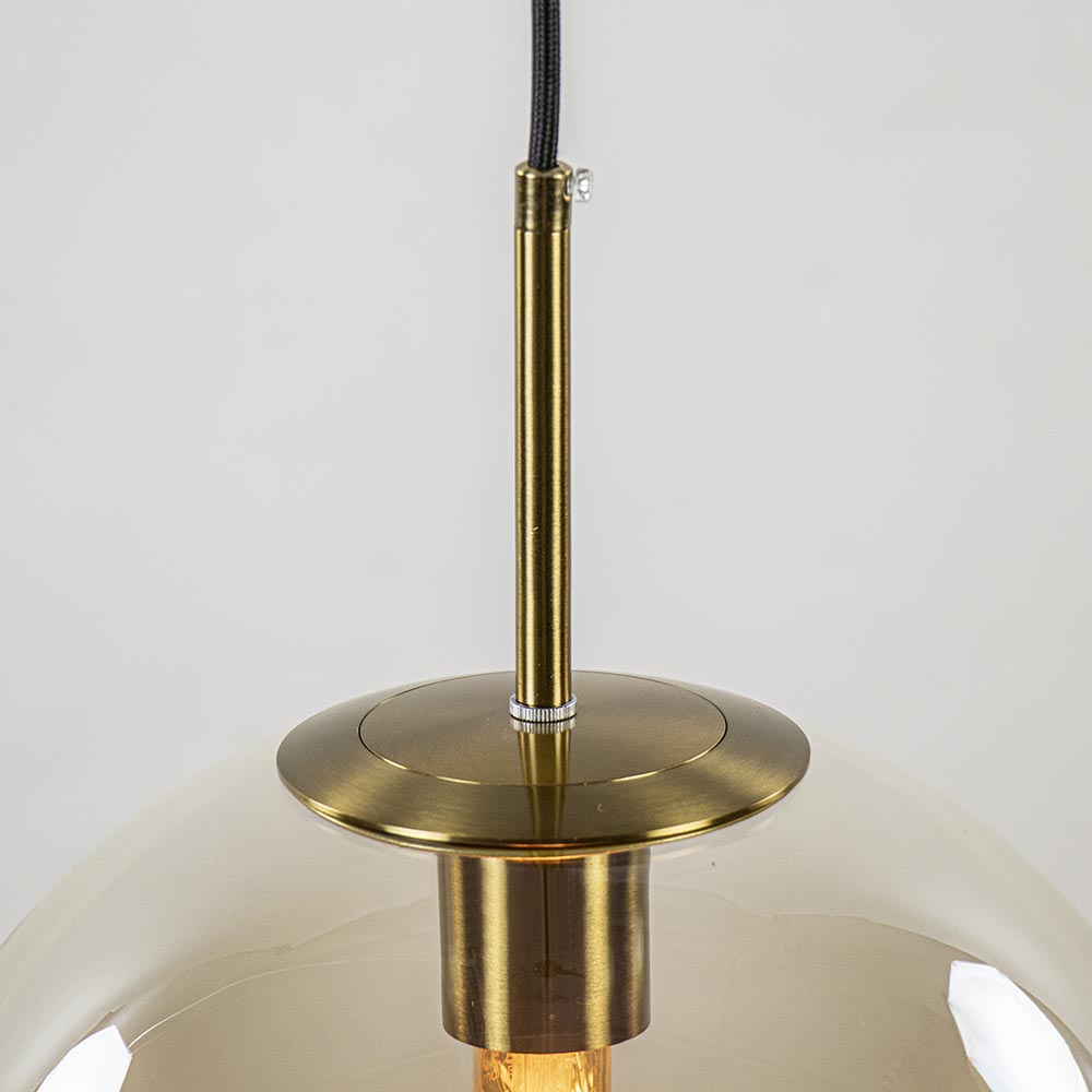 – Afmetingen: Ø30 x 190 CM – Bevestiging: Ø11 x 2.5 CM – Kap: Ø 30 x 42 CM – Goud, amber glas – Exclusief lichtbron (E27) – Dimbaar (exclusief)