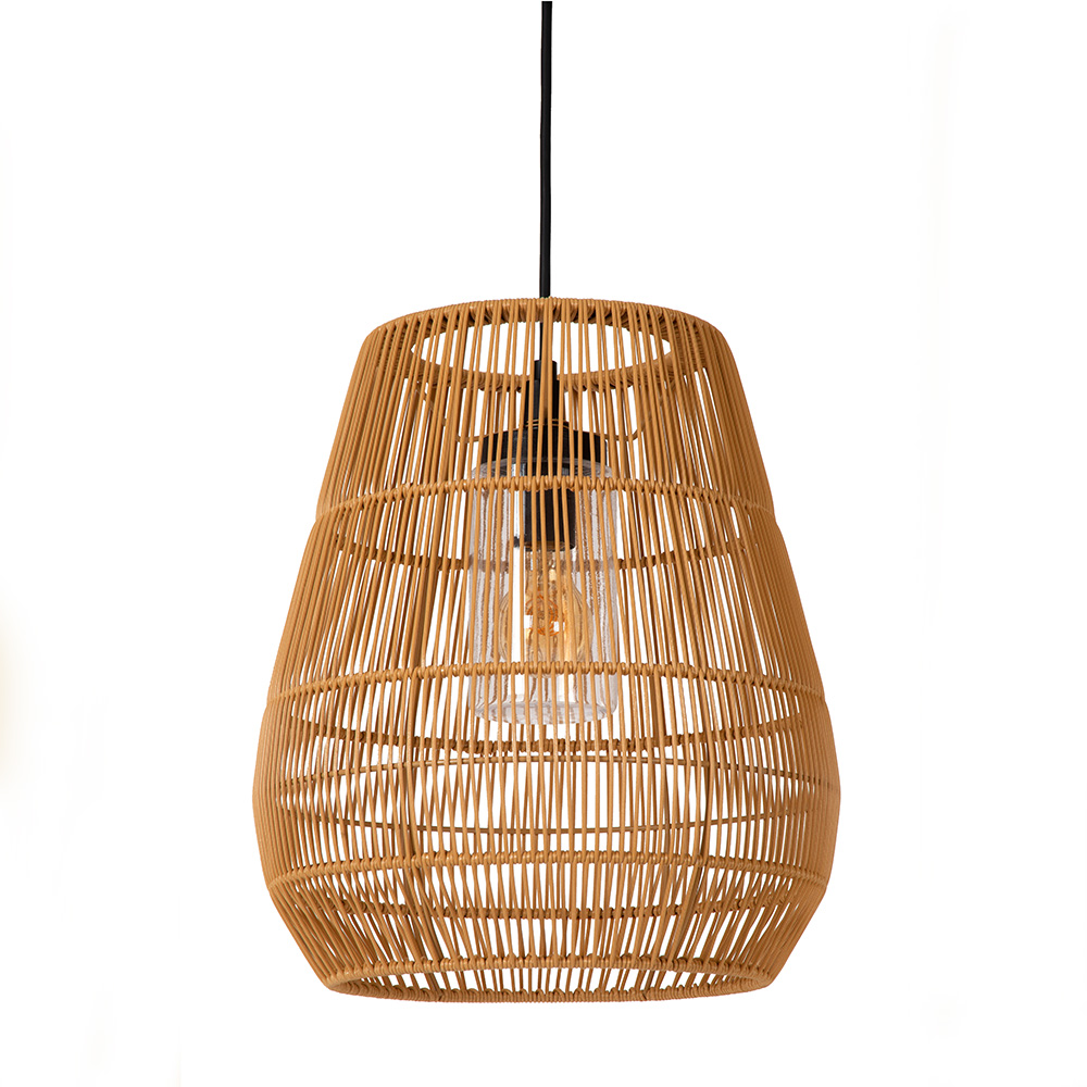Breng de gezelligheid van binnen naar je terras met deze leuke buiten hanglamp. De hanglamp heeft een stijlvolle, ronde lampenkap met rotanlook gemaakt uit hoogwaardig pvc, waardoor ze geschikt is voor langdurig en betrouwbaar gebruik in buitenruimtes. Deze pendel is verstelbaar in hoogte, zodat ze perfect in jouw tuin, op je terras of onder je overkapping past. Bovendien beschikt de hanglamp over een snoer van 3,5m met stekker om de lichtbron makkelijk aan en uit te schakelen.