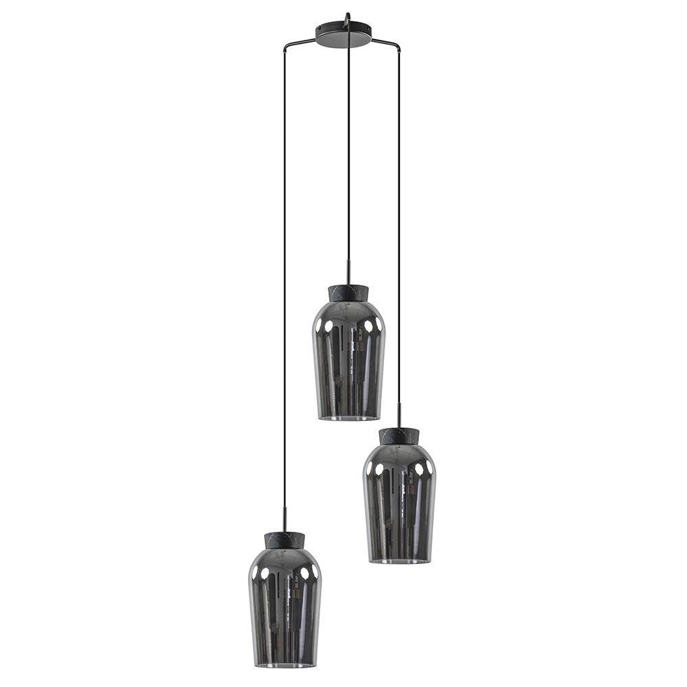 Hanglamp Nora 3L rond zwart/marmer/smoke