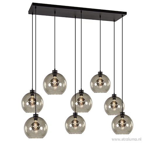 Hanglamp plaat 8-L zwart glas smoke 25cm