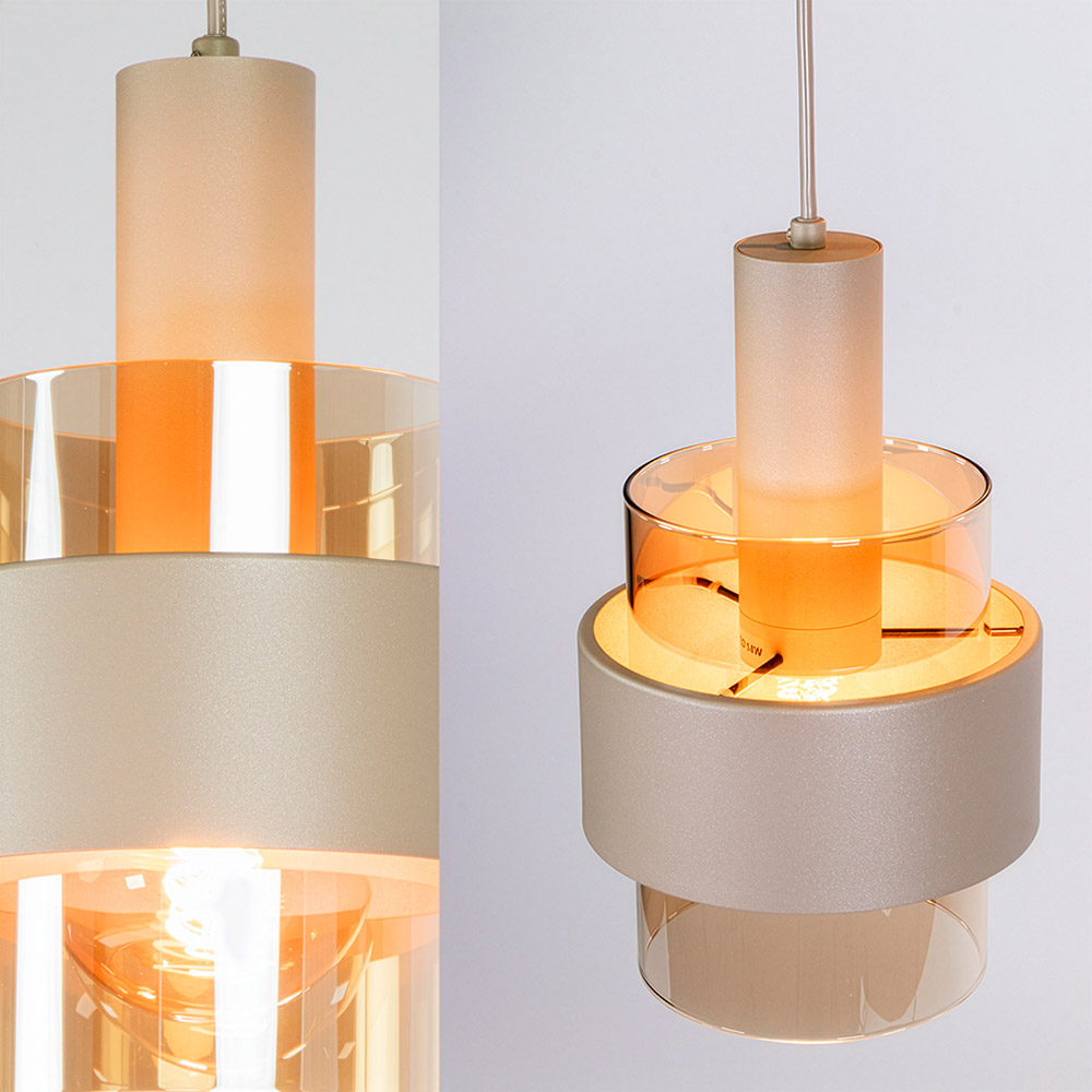 Hanglamp rond Marrone 1L in zand kleur met amber glas