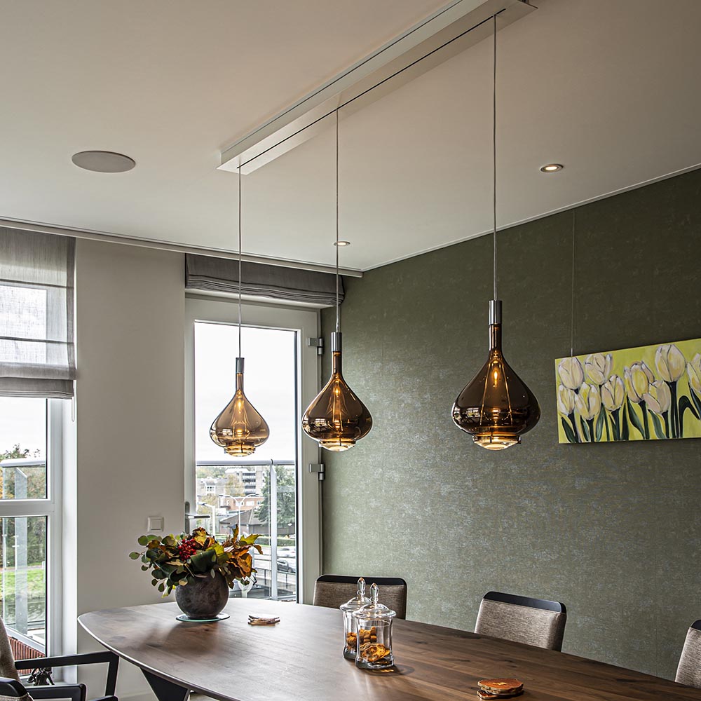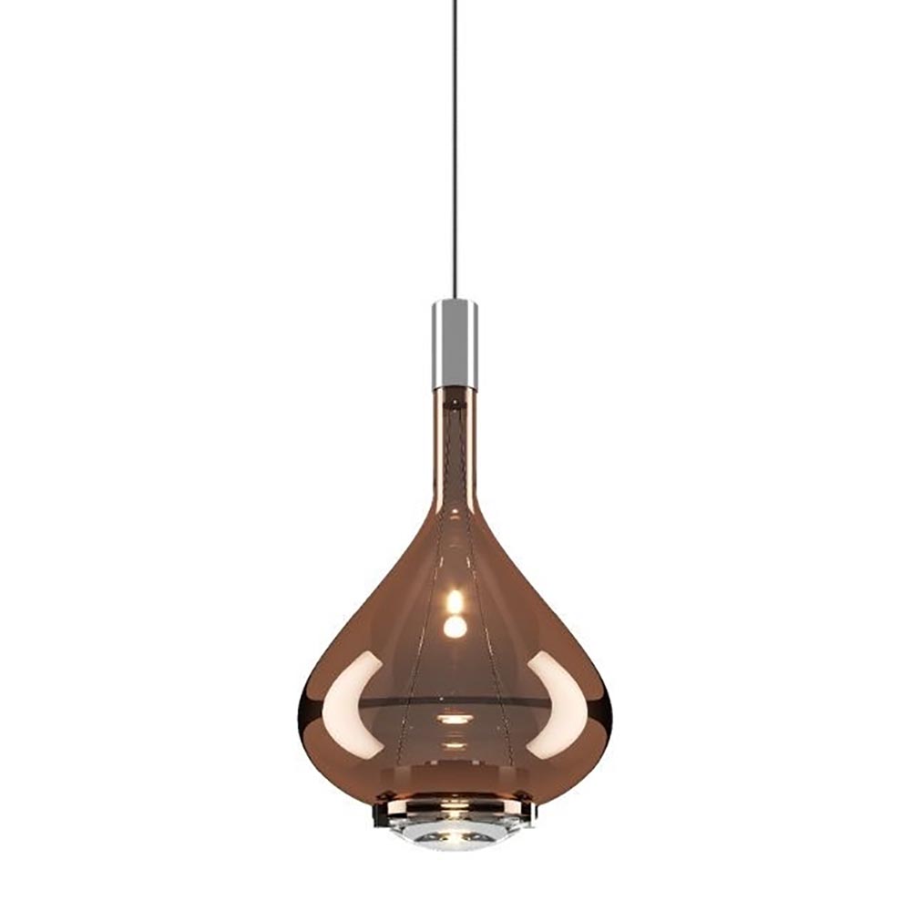 Een luxe hanglamp van Italiaans design. De kleine bronzen glazen hanglamp Sky-Fall is vervaardigd uit het beste glas en voorzien van de nieuwste LED technologie. De vorm van het glas is geïnspireerd op oude karraffen en is mondgeblazen in Italië. De LED technologie in het glas zorgt ervoor dat de lamp zowel direct als indirect licht geeft en met 2700 Kelvin mooi warm wit licht. Met 1815 lumen geeft de lamp een fijne lichtopbrengst die middels een externe dimmer ook is te dimmen (exclusief). De lamp kan als losse pendel worden opgehangen, maar is ook te bundelen met meerdere op een balk of met diverse soorten bij elkaar. De Italiaanse design hanglamp glas is afgewerkt met chromen details en is mooi te combineren in diverse woonstijlen.