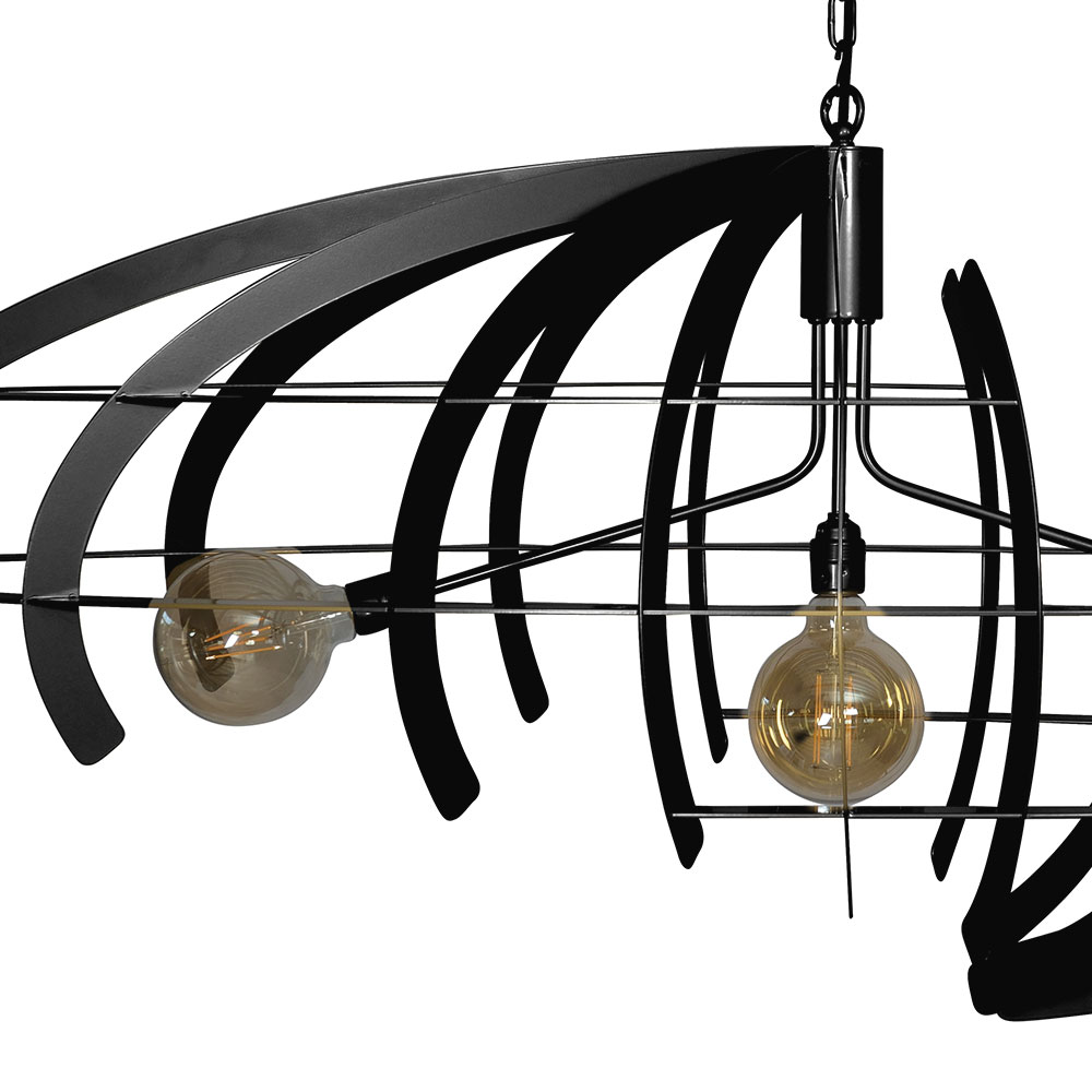 – hoogte: 185 cm – kap: 150×60 cm – bevestiging: Ø12×2,5 cm – metaal – mat zwart – exclusief lichtbron (3x E27) – dimbaar (exclusief) – gewicht: 15 kg