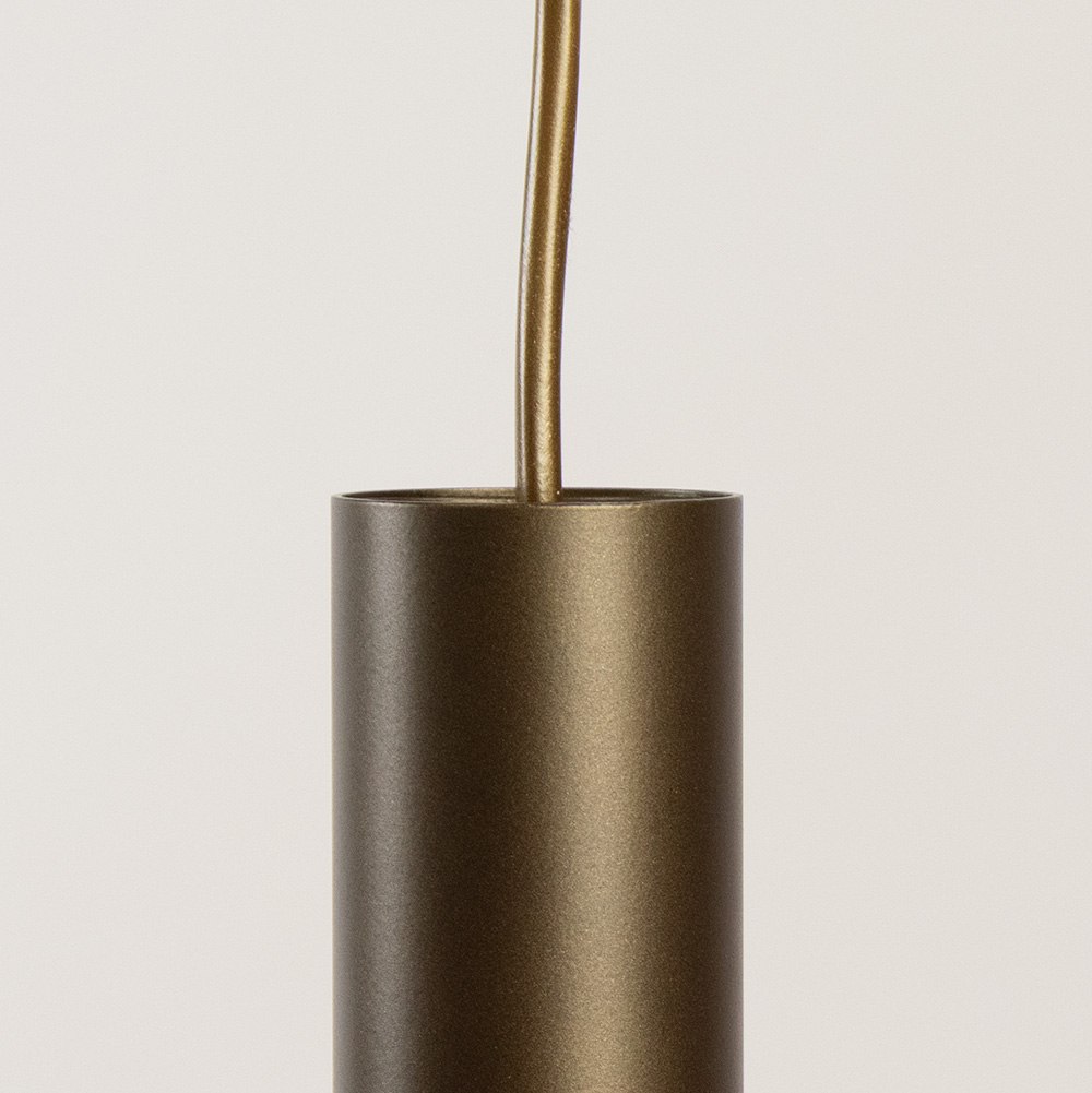 Deze moderne hanglamp heeft een strakke, minimalistische uitstraling en is perfect voor wie op zoek is naar eenvoud met een elegante twist. De lamp is uitgevoerd in een mooie bronze kleur met een cilindervormige metalen kap die een ingetogen en verfijnde look biedt. De lamp wordt ondersteund door een subtiele, brons/goud kabel, die de strakke lijnen van het ontwerp benadrukt. De lamp is ideaal voor boven een eet- of salontafel of als accentverlichting in elke ruimte waar je een rustige, moderne sfeer wilt creëren. De eenvoudige maar krachtige uitstraling van de lamp maakt het geschikt voor zowel minimalistische als meer eclectische interieurstijlen. Met zijn slanke profiel en tijdloze ontwerp is deze lamp een uitstekende keuze voor wie op zoek is naar zowel stijl als functionaliteit in hun interieur. Perfect voor in een woonkamer, keuken of zelfs in een gang.