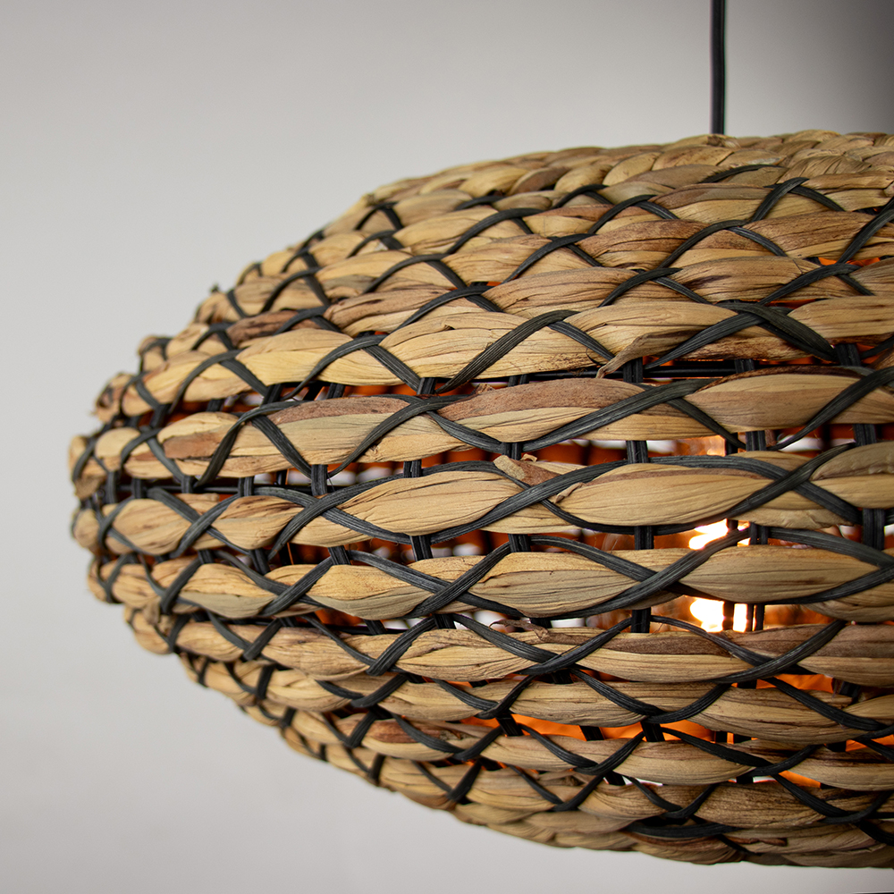 Deze leuke hanglamp van Light & living is een mooie toevoeging aan het interieur. De ronde lamp is gemaakt van gevlochte rattan wat rust op een metalen frame. De natuurlijke kleur van het rattan wordt opgebroken door het zwarte rattan wat door de lamp heen gevlochten is voor een speelser effect. De hanglamp is in hoogte te verstellen tot max 155 cm en heeft een gewicht van 1,9 kg.