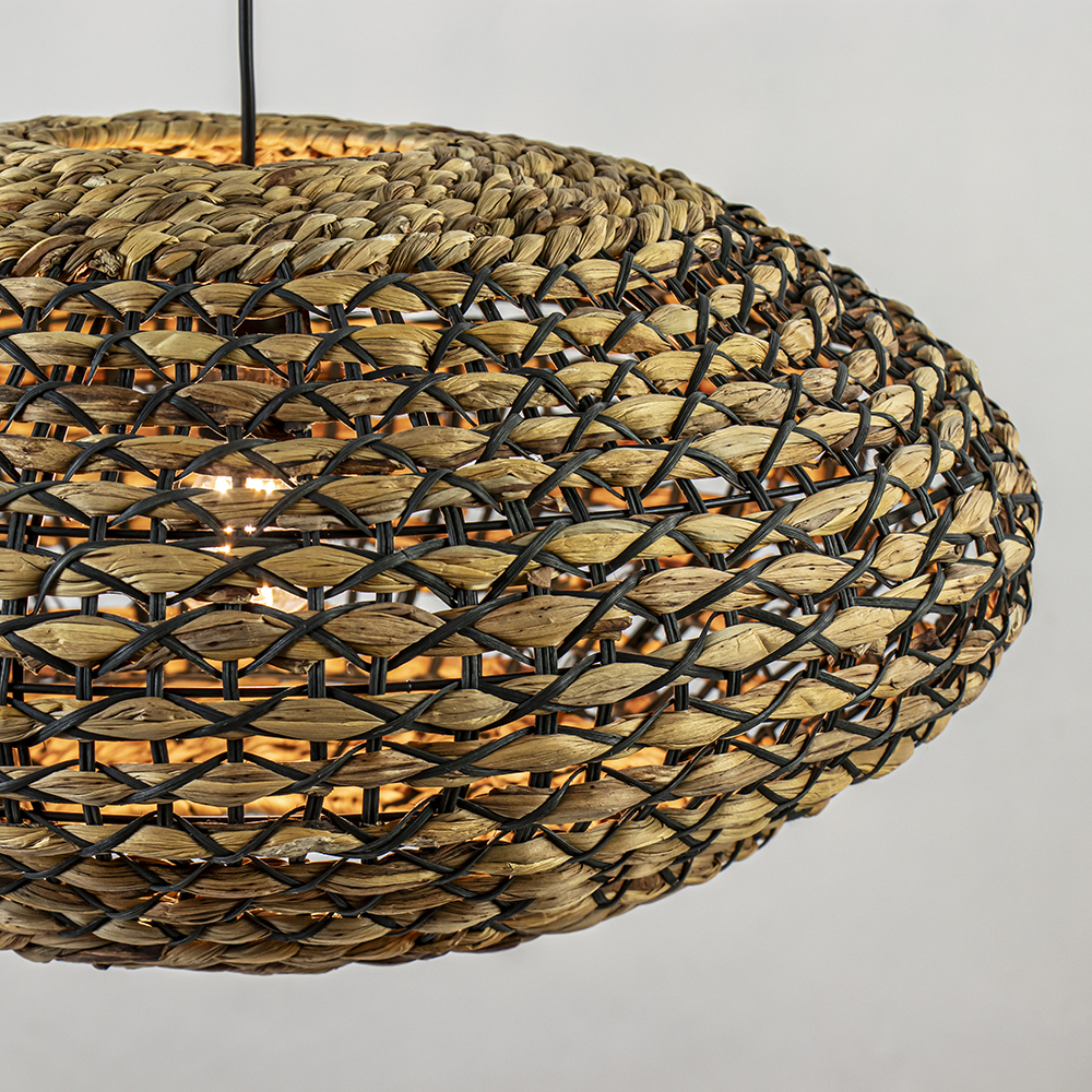 Deze grote hanglamp brengt sfeer en warmte in huis. De grote rotan hanglamp Tripoli is mooi te combineren in diverse woonstijlen. Het rotan is voorzien van een decoratief design en is met grove naturel en fijnere zwarte strookjes gevlochten. De kleuren van het rotan zorgen voor een warme uitstraling en het zwart geeft de rotan kap een stoere moderne look. De grote kap hangt aan een zwart snoer die naar wens is in te korten. De lamp heeft een totale hoogte van 185 cm wat de lamp prima geschikt maakt voor een ruimte als de eetkamer, woonkamer of slaapkamer.