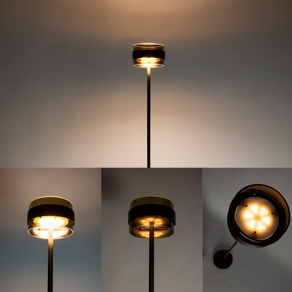 Specificaties: • Merk: Masterlight • Serie: Imperia • Kleur: Cacao • Afmetingen totale lamp: H 173 cm • Afmetingen voet: H 3 cm × Ø 26 cm • Materiaal: Metaal en glas • Lichtbron: Geïntegreerde LED (niet vervangbaar) • Lichtopbrengst: 2 × 960 lumen • Lichtkleur: 2700K–2200K (dim to warm) • Dimbaar: Ja, via geïntegreerde touchdimmer