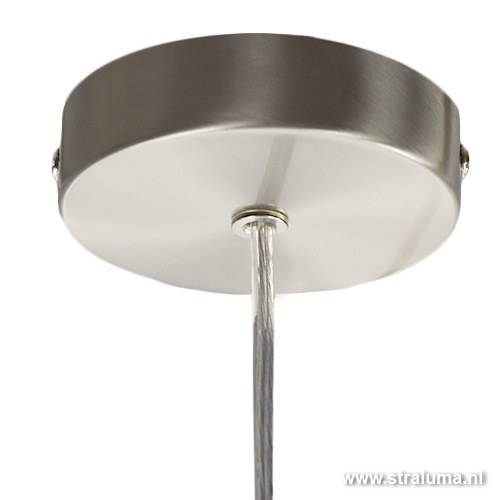 – metalen plafondbevestiging heeft een doorsnede van 10 cm en is 2,5 cm hoog – voorzien van transparant snoer – Ø 53 cm – hoogte 37 cm