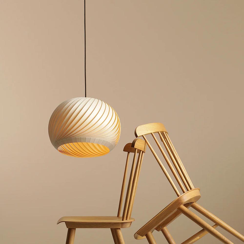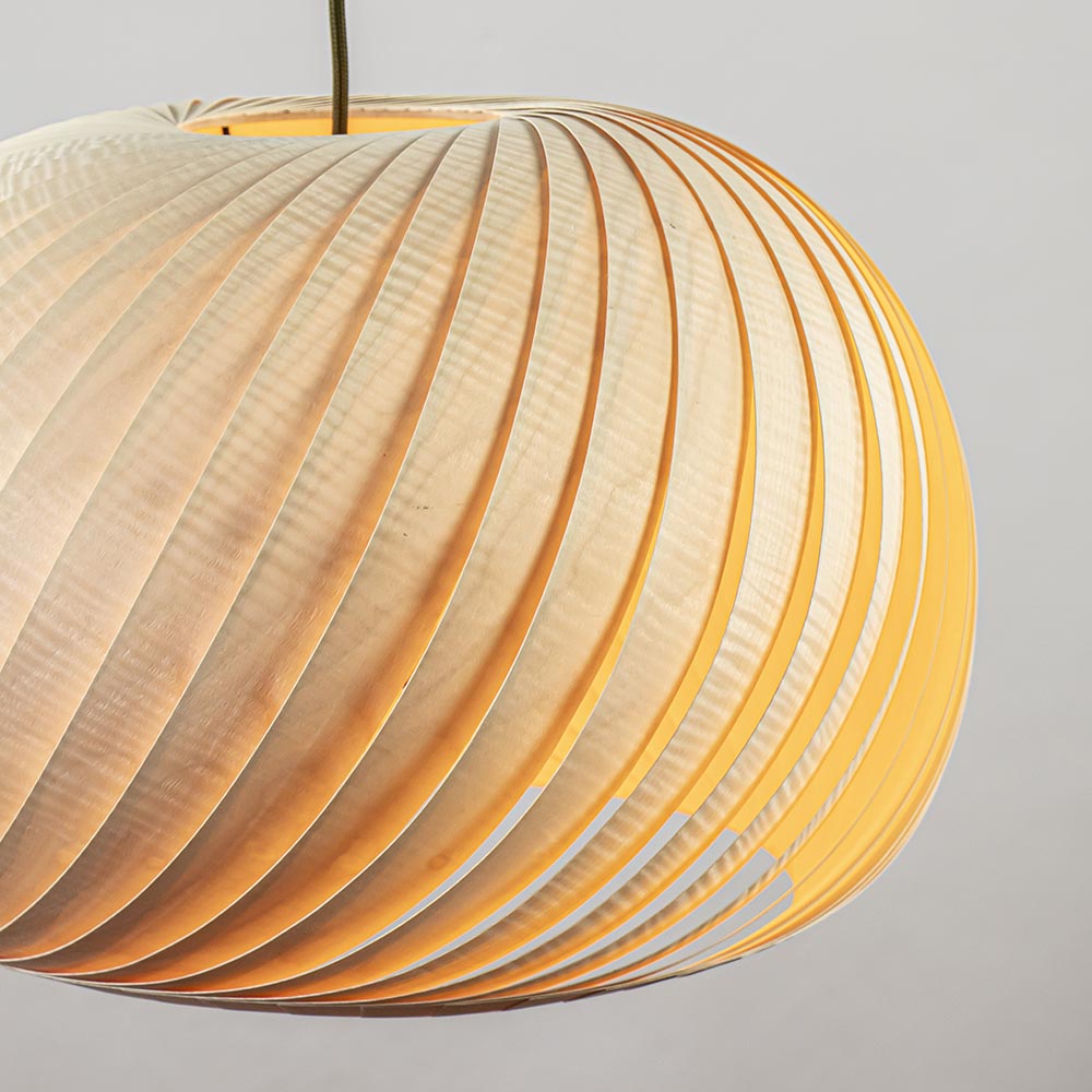 Natuurlijke materialen zijn nog steeds te vinden in het interieur. Vooral hout is niet weg te denken en zorgt door z’n warme uitstraling voor een fijne en gezellige sfeer. Zo ook deze ronde hanglamp. De bol is samengesteld uit smalle lamellen die schuin in elkaar zijn gezet. Dit zorgt ervoor dat de lamp een leuk effect geeft wanneer deze wordt ingeschakeld. De houten kap hangt aan een zwart stof omwonden snoer welke naar wens is in te korten. De maximale hoogte van de lamp is 225 cm. De houten hanglamp is dimbaar middels een externe dimmer (exclusief) en wordt geleverd exclusief lichtbron. Een mooie toevoeging boven een eettafel of in de slaapkamer.