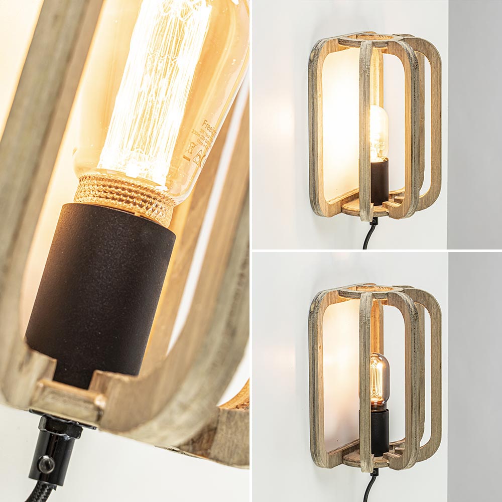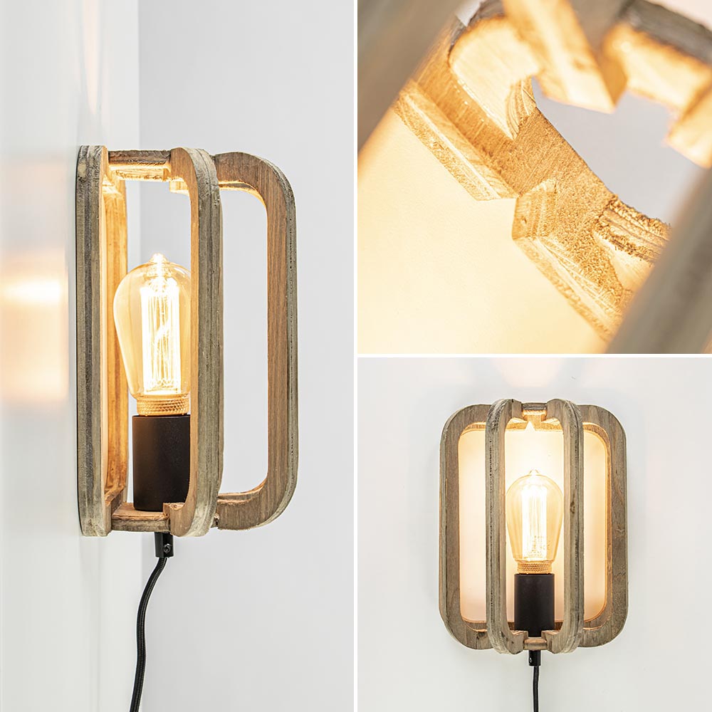 Sfeervol en gemakkelijk overal op te hangen. Deze stoere houten wandlamp past perfect in meerdere woonstijlen. De lamp wordt geleverd inclusief snoer waardoor de lamp overal te bevestigen is, het enige wat u nodig heeft is een stopcontact. De combinatie tussen het robuuste hout en de mat zwarte fitting maakt het een leuke stoere wandlamp. Perfect voor in de slaapkamer of de hal.