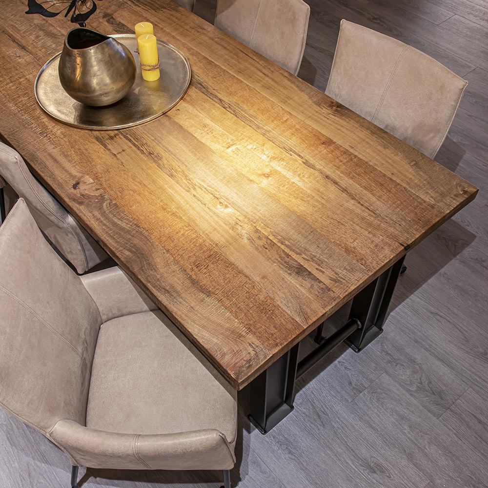 Deze XL Company eettafel is een echte blikvanger in elke ruimte. Het massieve mangohouten blad en het stoere metalen onderstel zorgen voor een industriële uitstraling met een warme twist. Met zijn royale afmeting van 225×100 cm biedt deze tafel meer dan genoeg plek om met familie en vrienden te tafelen.