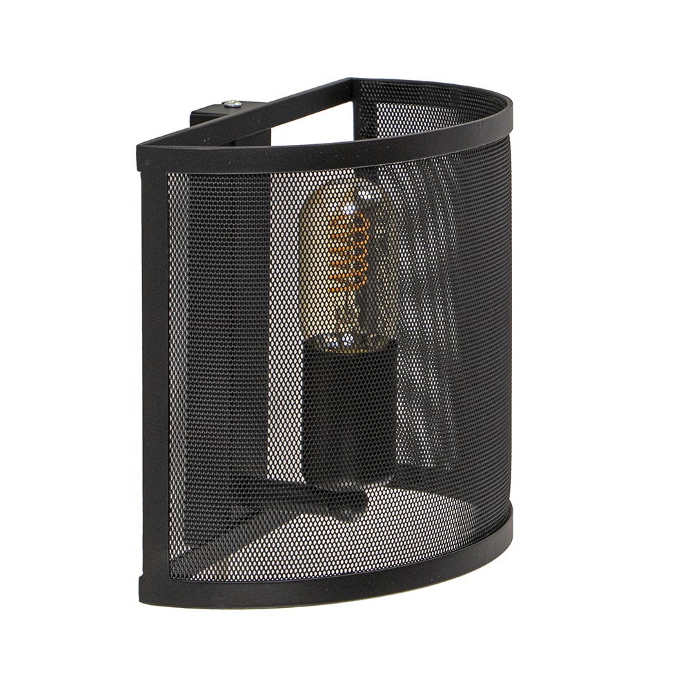 Stoer als bedlampje, maar ook sfeervol in de woonkamer of hal. De halfronde wandlamp heeft een industriële look die ook mooi past bij een landelijke woonstijl. De kap is gemaakt van een metalen frame waar gaas in is verwerkt en is bevestigd op de rechthoekige wandbevestiging die direct op een contactpunt dient te worden aangesloten, de wandlamp heeft namelijk geen snoer. De mat zwarte wandlamp wordt geleverd exclusief lichtbron (E27).