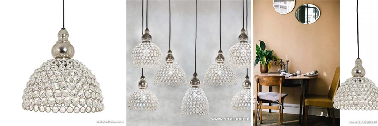 Het DREAM-palet werkt ook erg goed in een romantisch interieur. Bijvoorbeeld met deze leuke kleine hanglamp met kristallen.