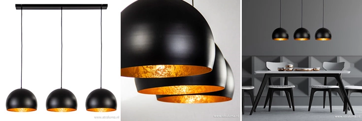 Modern, design en sfeervol, drie omschrijvingen die perfect bij deze 3-lichts hanglamp passen. De strakke vormgeving geeft de lamp het moderne/design karakter, waar de gouden binnenzijde van de kap voor de sfeer zorgt. Het goud creëert een warme verlichting die veel sfeer met zich mee draagt. Prachtig met Spiced Honey.
